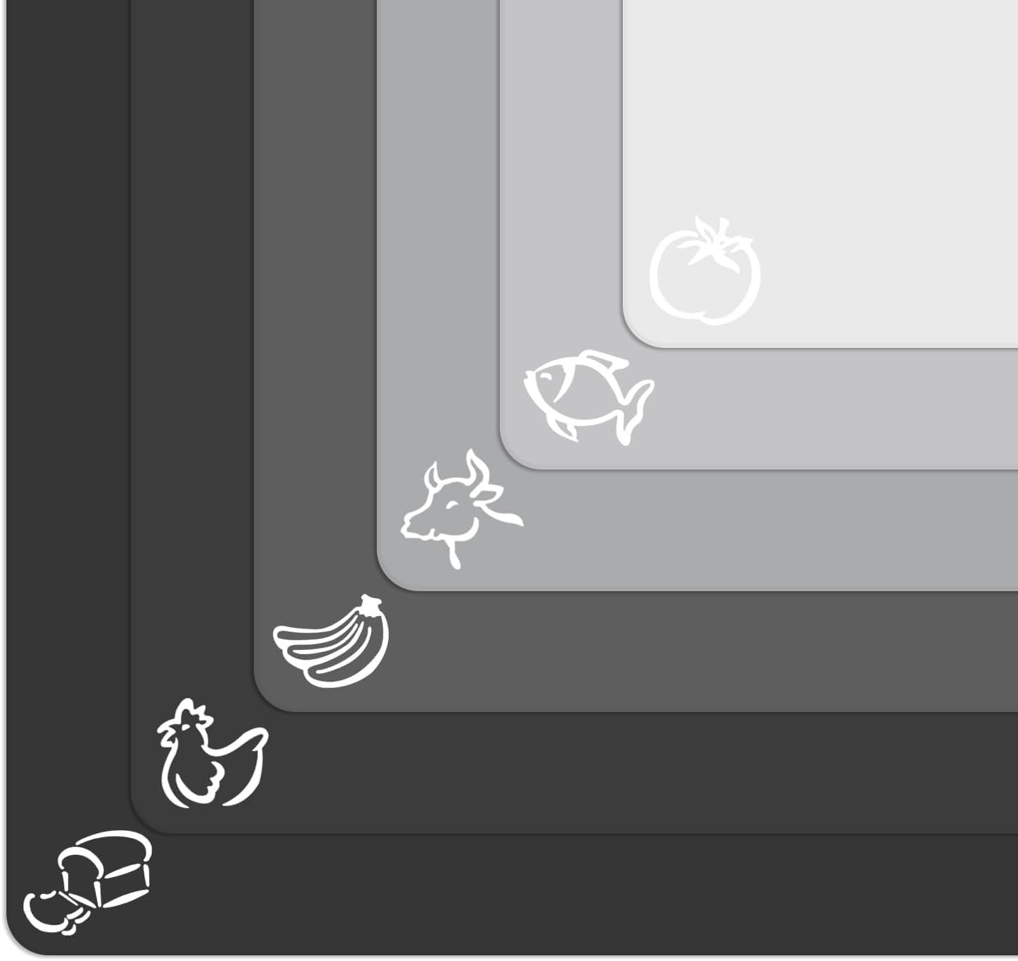 - TEXTURE WAFFLE GRIPPED BOTTOM - PREVENTS SLIPPING ON MOST COUNTER TOPS - Each chopping board has a crosshatch textured back, so the mats will not slip on your counter-top! (Just wet a paper towel and put underneath) Sized for the home chef. Easy to store & maintain.