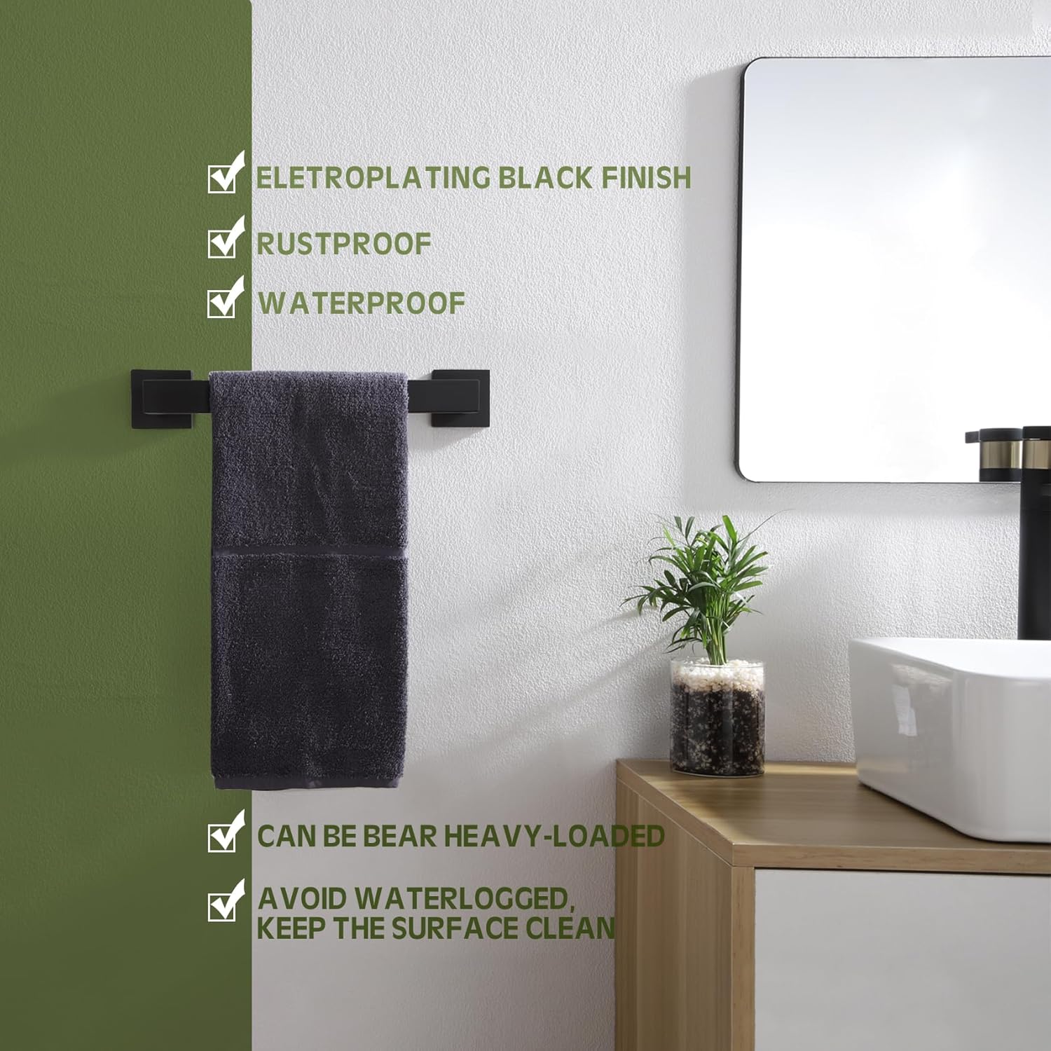 - ◄ MATTE BLACK FINISH ► The towel holder is painted finish which is fingerprint-proof and water-proof. And the surface covering is resisting daily scratches, corrosion, and tarnishing