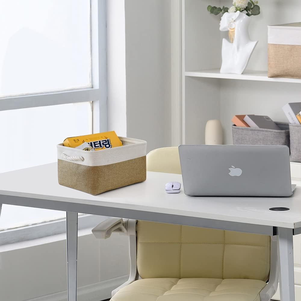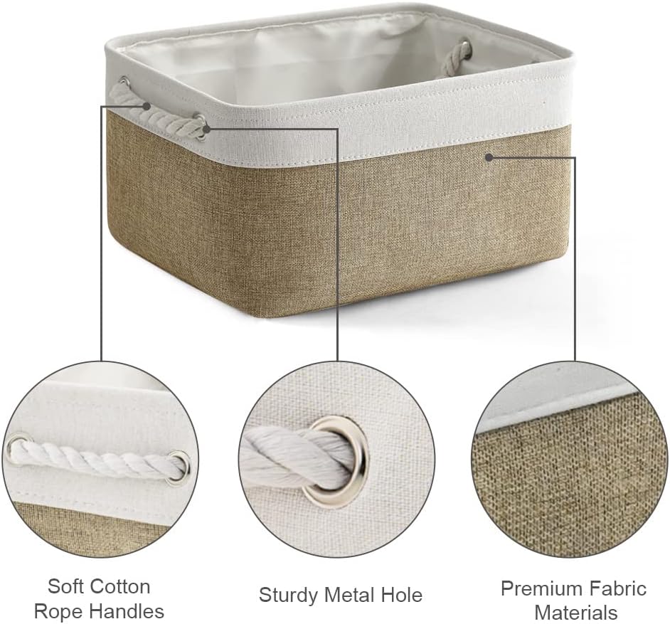 TheWarmHome Storage Basket for Shelves - 1 Pack 14x10x6.7 inch Collapsible Storage Bins Storage Boxes for Organizing for Laundry Closet Gift Cloth Nursery (Whiet & Khaki)