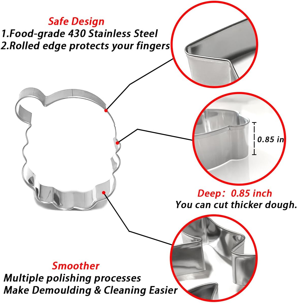 - 【High-quality Materials】- Our Christmas cookie cutters are made of Food-grade 430 Stainless Steel, the surface is polished, so it is smooth, durable and easy to clean.