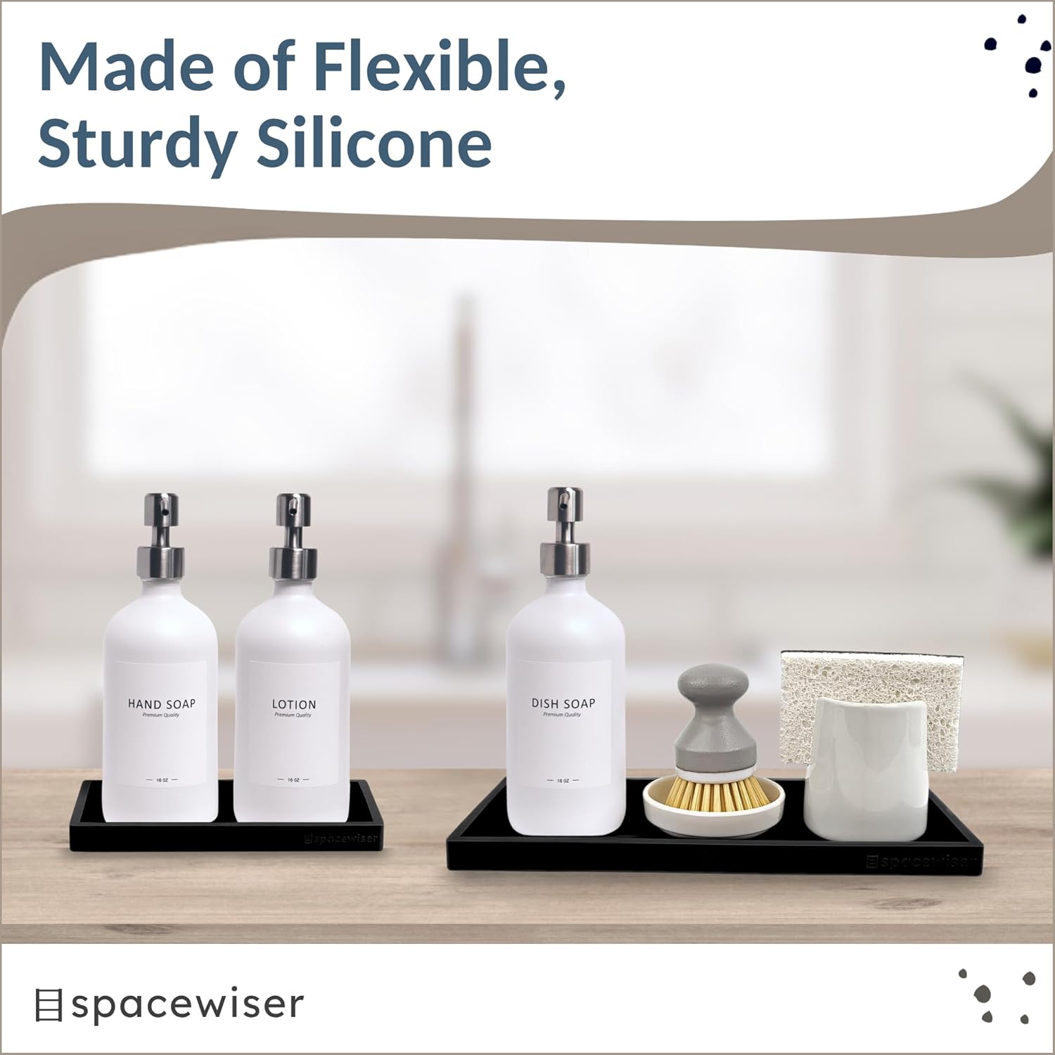 Countertop and Vanity Tray - 2 PC (11” and 7”) Shatterproof Silicone Kitchen and Bathroom Trays for Counter, Kitchen Soap Dispenser Tray, Vanity Trays for Bathroom, Perfume Key Tray