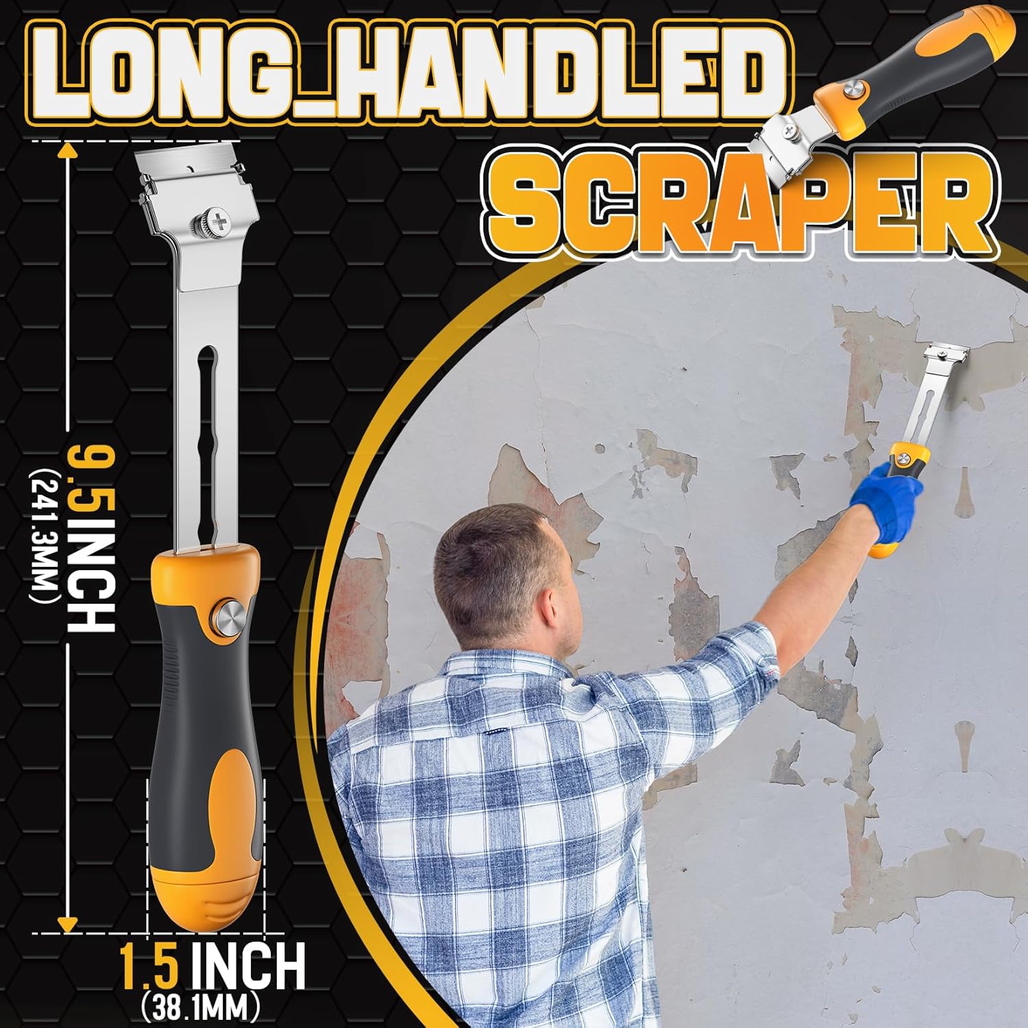 - VERSATILITY FOR ALL TASKS - Our razor blade scraper set is designed to handle a wide range of cleaning and DIY tasks effortlessly. It includes a long-handle scraper for large surfaces and high-reaching tasks, and a short-handle scraper for precise work, ensuring accurate removal of dirt, stickers, adhensive.