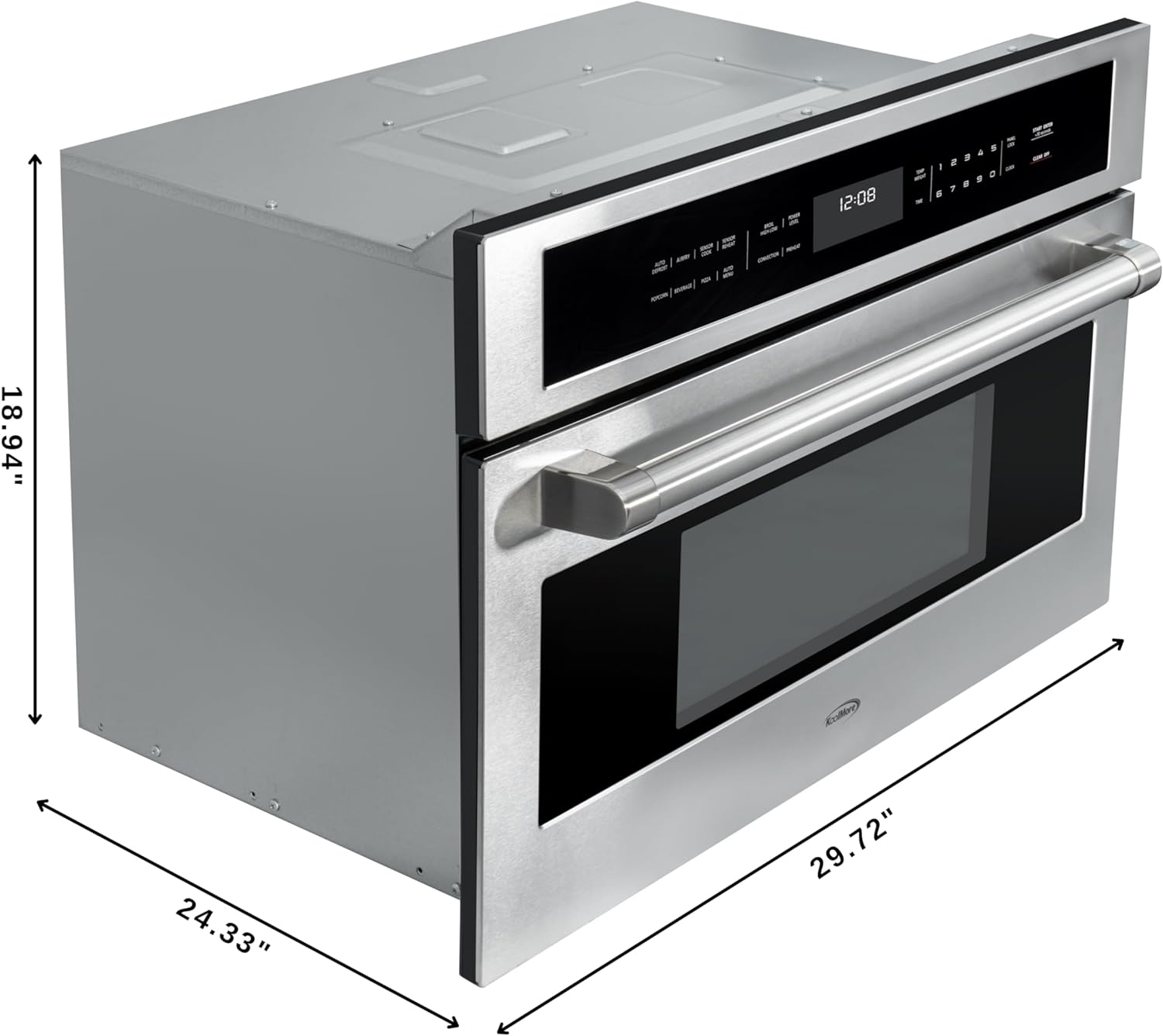 KoolMore KM-CWO30-SS Built-in Microwave with Convection Oven and Air Fryer, 1000W Power with 10 Levels, UL Listed Capacity in Stainless-Steel, 30 in/1.6 cu. ft, Silver