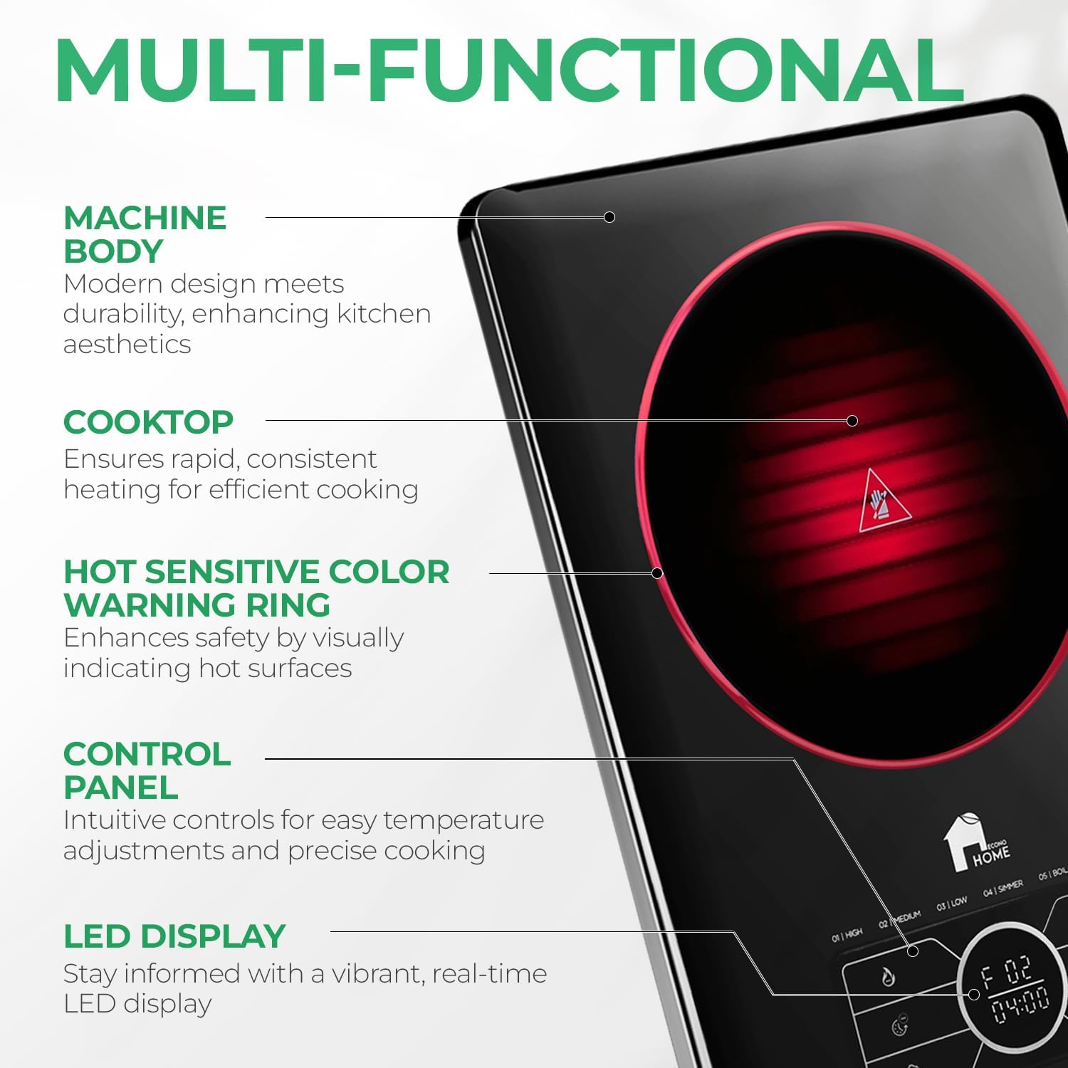EconoHome Superconductor Portable Electric Stove - 1500W Extra Thin (0.71") & Suitable for All Types of Cookware Portable Cooktop with Touch Panel, Timer, Adjustable Heating Power, Auto-Shutdown