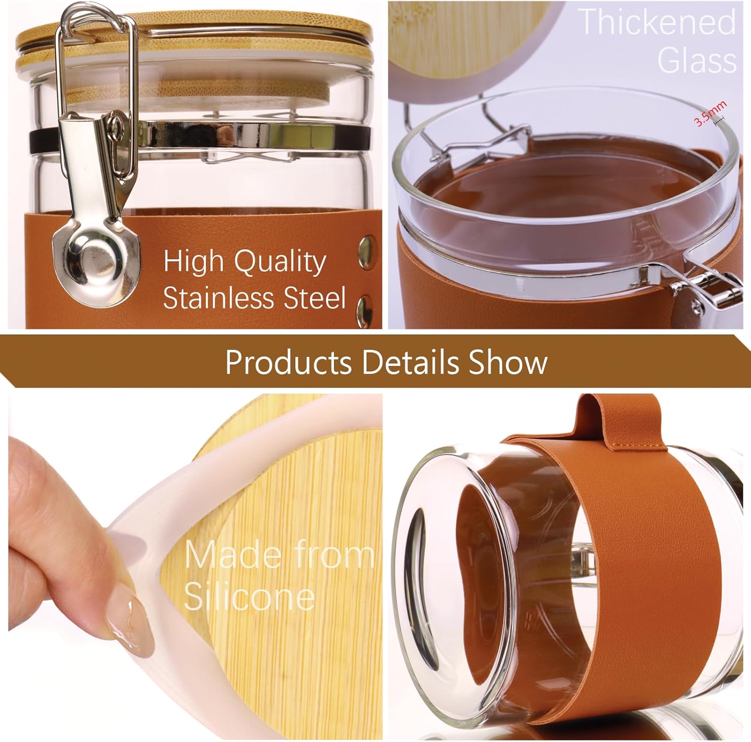- 【High Quality Design】 The container is made from real high-grade borosilicate glass, Make sure it is still bright after long time using. 3.5mm thickened glass design, exquisite stainless steel buckle, fine workmanship, making the jar more textured.