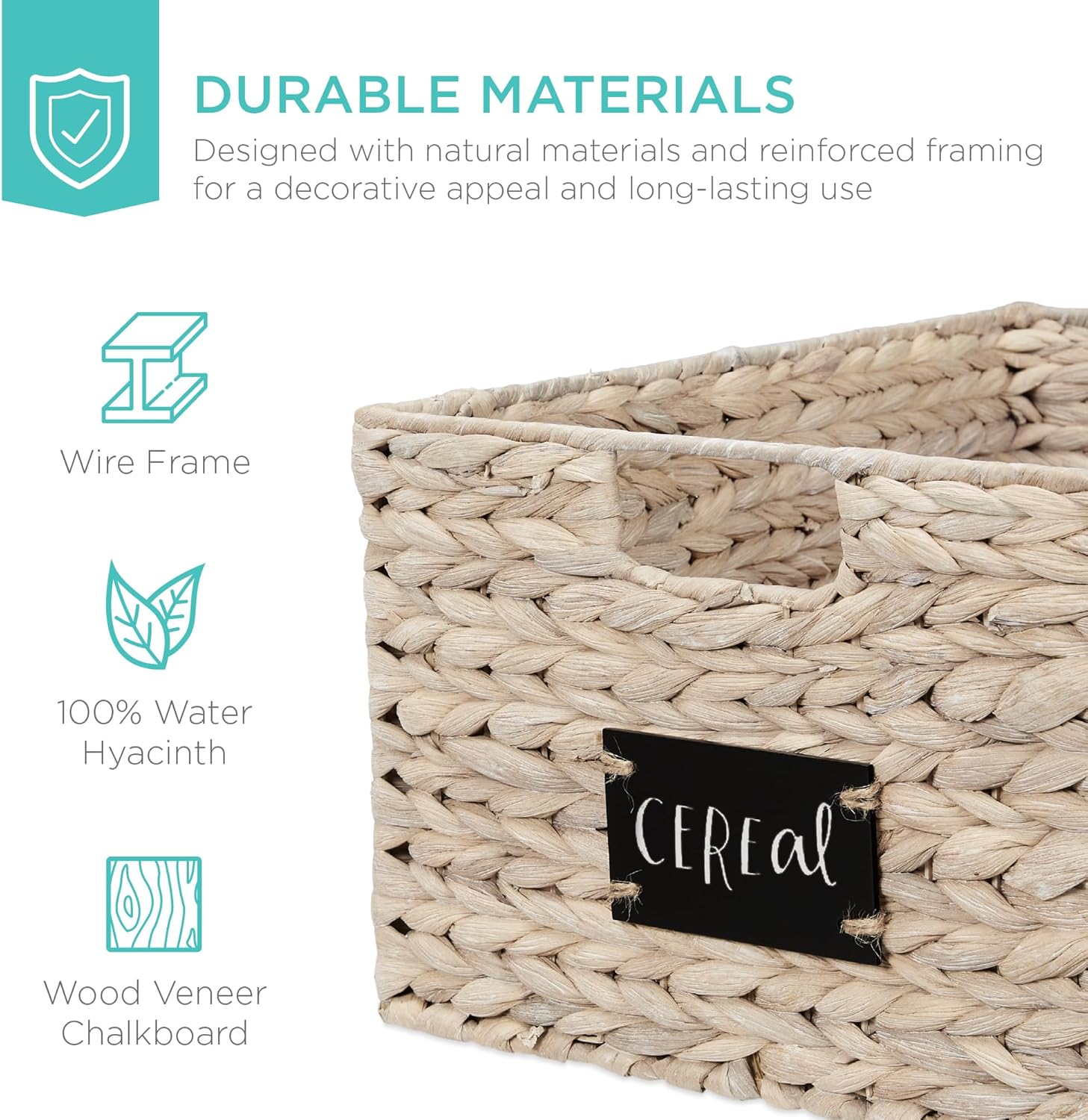 Best Choice Products Pantry Baskets Set of 2 16x12in Water Hyacinth Storage Baskets, Woven Wicker Kitchen Organizers with handles w/Chalkboard Label Chalk Marker - White