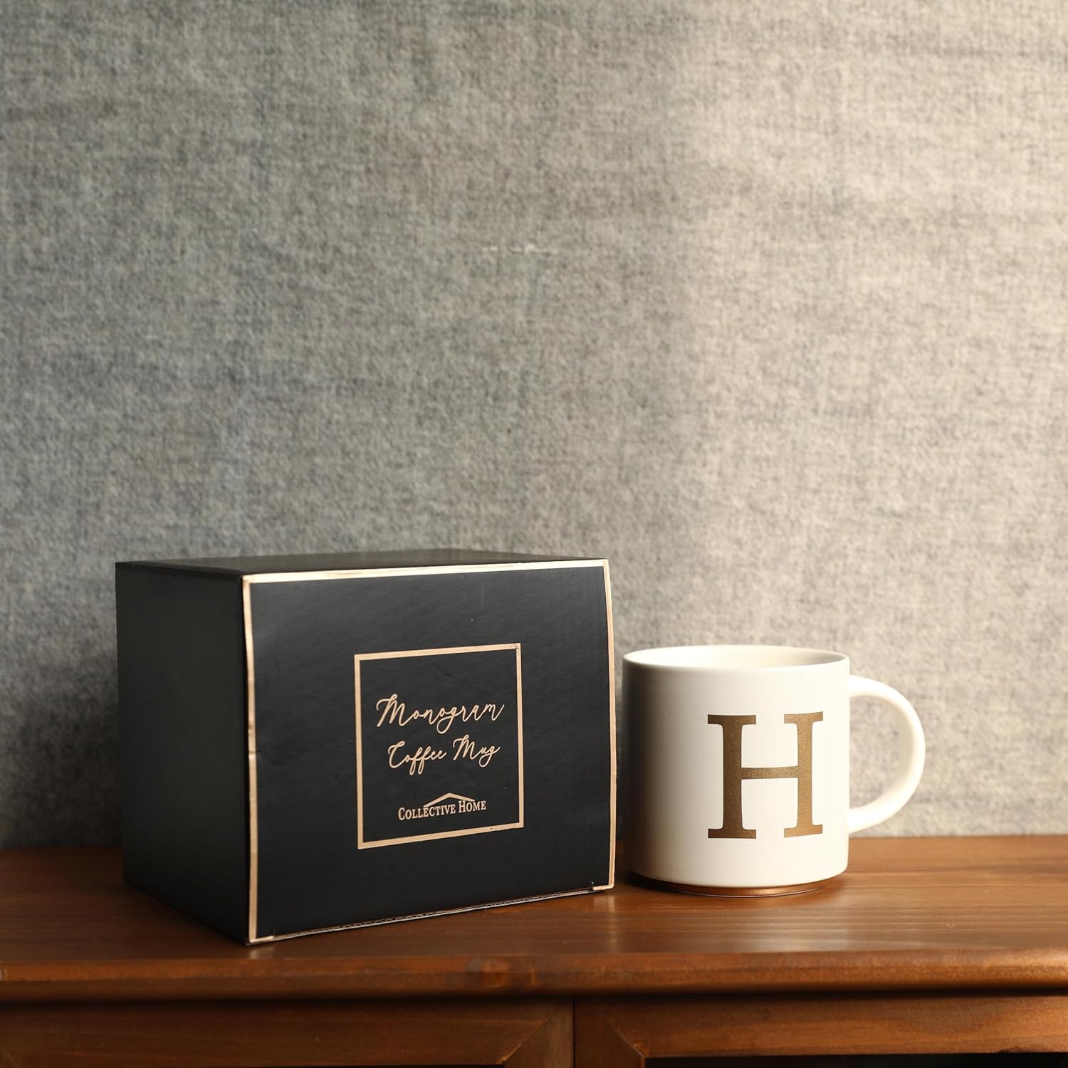 COLLECTIVE HOME - Monogram Ceramic Mugs, 15 oz Golden Initial Coffee Cups, Elegant Alphabet Tea Mugs, Elegant Personalized Mug with Gift Box, Unique Mug with Double Side Capital Letter (H)