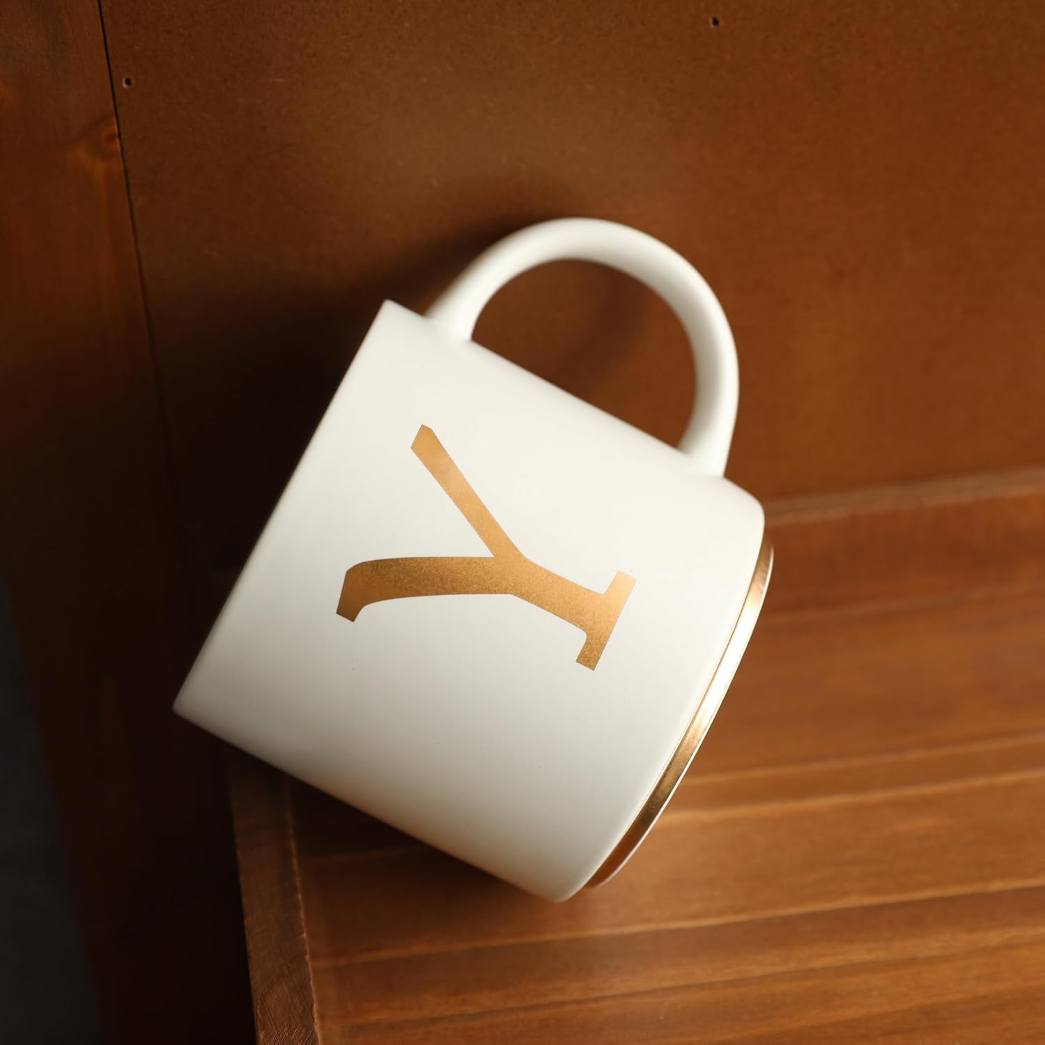 COLLECTIVE HOME - Monogram Ceramic Mugs, 15 oz Golden Initial Coffee Cups, Elegant Alphabet Tea Mugs, Elegant Personalized Mug with Gift Box, Unique Mug with Double Side Capital Letter (Y)