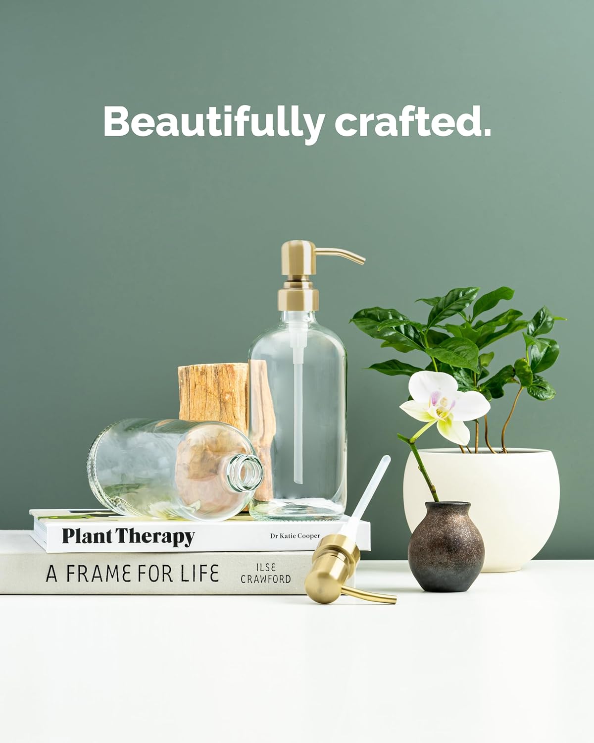 - UNRIVALED CONSTRUCTION - Set of 2 premium fortified glass soap dispenser with pump. 16 Oz shampoo dispenser, bathroom soap dispenser set for daily use. Vine Creations soap dispensers are Lead-free.