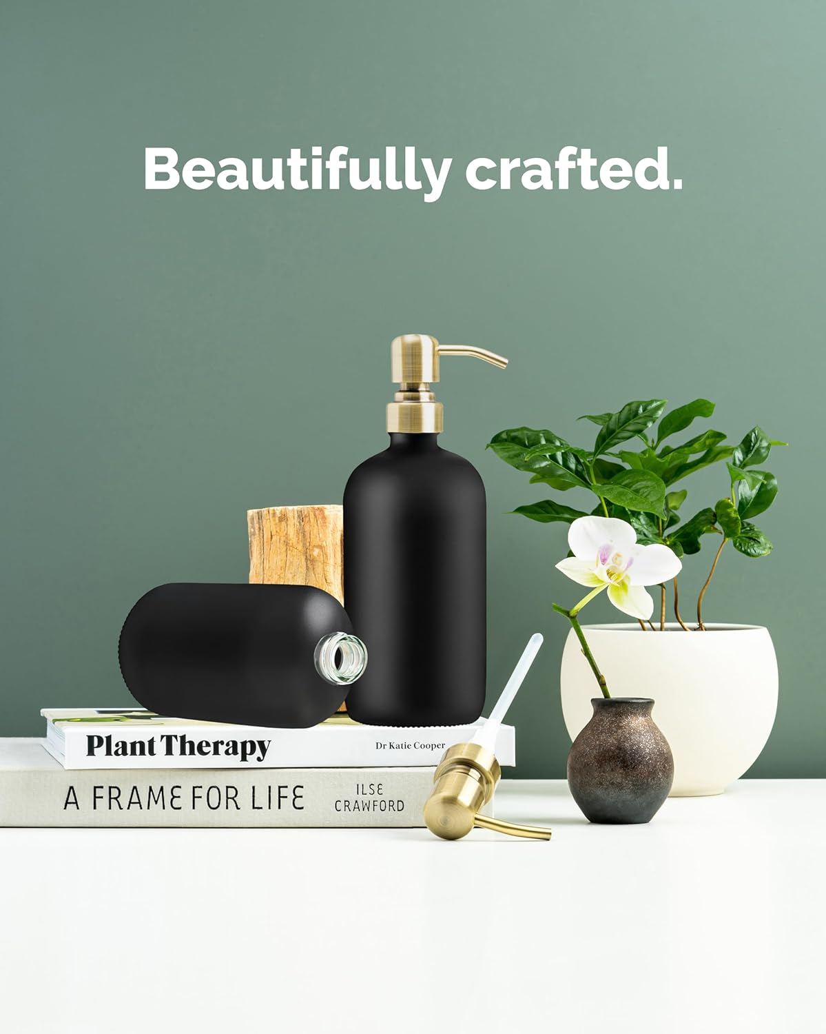 - UNRIVALED CONSTRUCTION - Set of 2 premium fortified glass soap dispenser with pump. 16 Oz shampoo dispenser, bathroom soap dispenser set for daily use. Vine Creations soap dispensers are Lead-free.