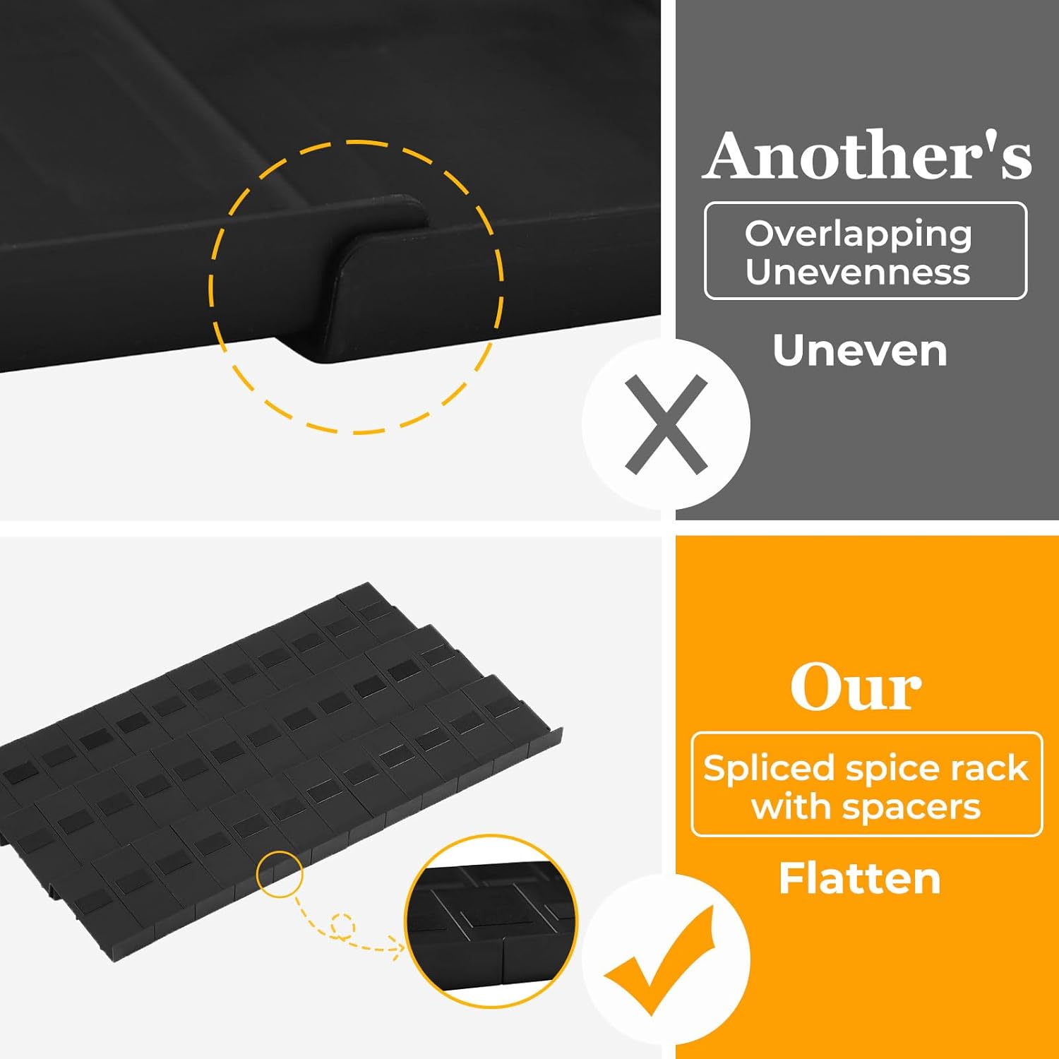 - Customizable Layout: The interlocking design allows you to customize the horizontal arrangement of the spice inserts, helping you make the most of your drawer space. Easily adjust the number of inserts to fit your specific needs and preferences.