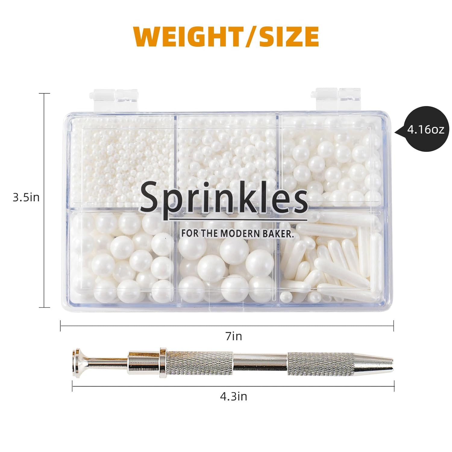 Kasvan White Mix Sugar Sprinkles - Edible Candy Pearls with 4-Claw Sprinkle Pen,118g/4.16 Oz, Gift Box Pack, Baking Cake Decorations, Ice Cream Toppings and Cookie Decorating, Wedding Party Chirstmas Supplies