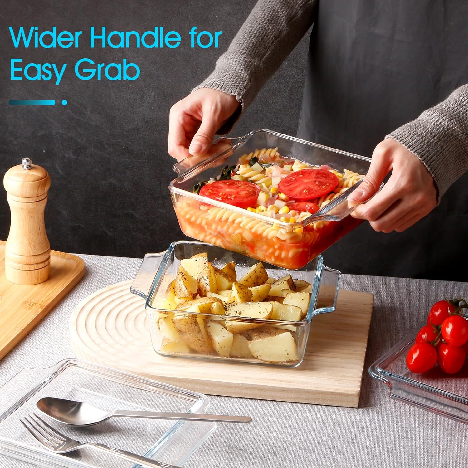 Set of 2 Glass Casserole Dish With Glass Lid, Square 6in x 6in Glass Baking Dish Oven Safe, Mini Casserole Dish with Lid