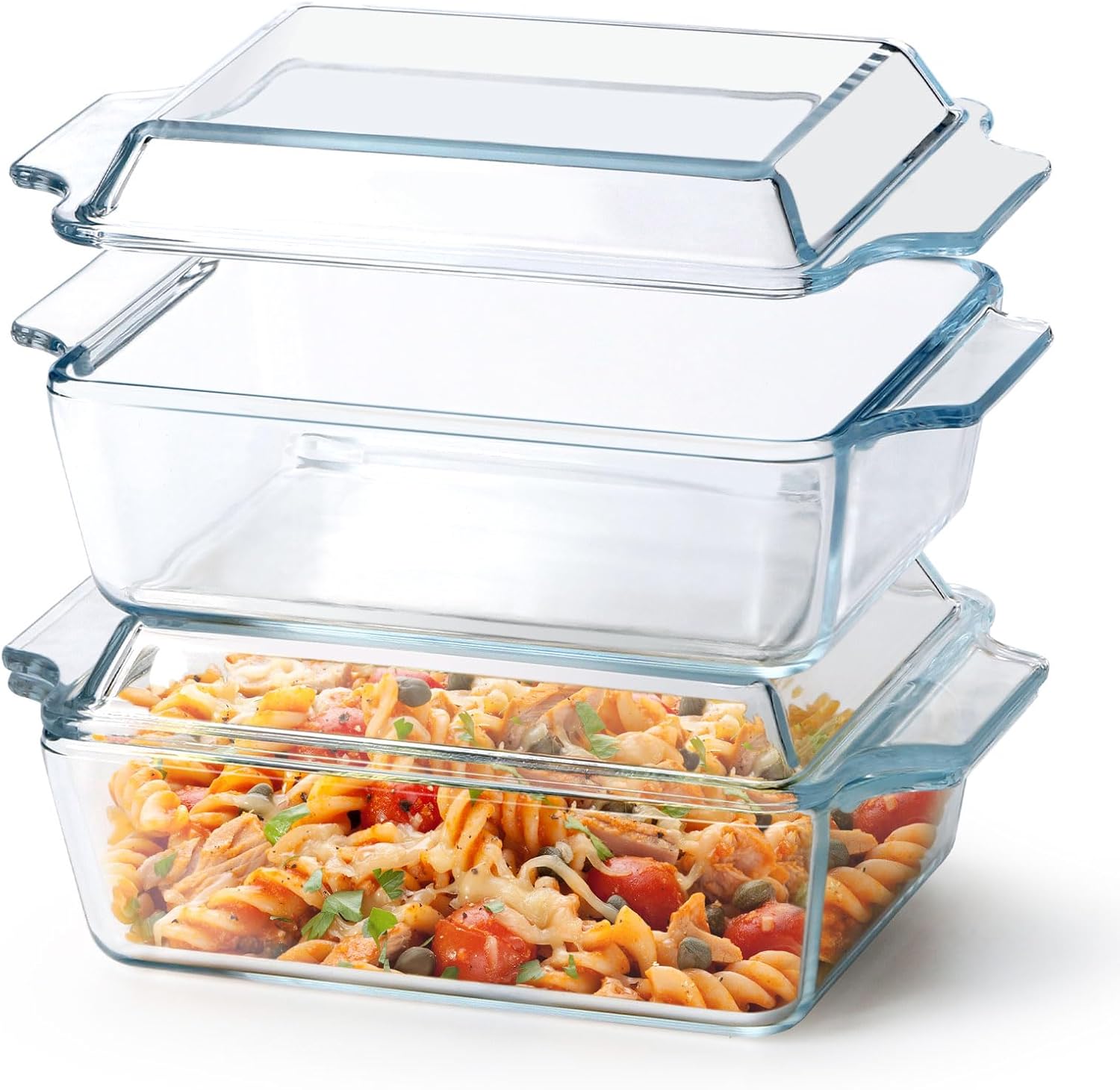 - 【Easier to See the Food Inside】Glass cookware allows you to see through it, transparent glass casserole dish make you to easily see the baking progress well. You can monitor the cooking process without having to constantly open the oven door.