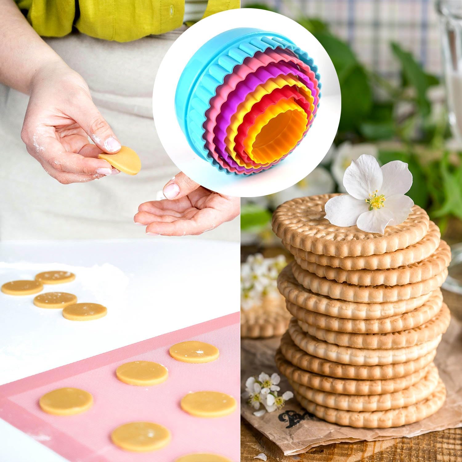 - Wide Application: Whether you are a professional baker or a beginner, this round cookie cutting set is a must-have accessory for your kitchen, suitable for making sugar cakes, cookies, chocolates, cake decorations, fondant cutouts, pastries and more