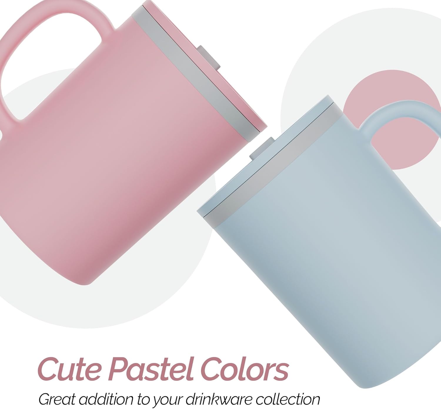 Copco Iconic 16oz Double Wall Insulated Desk Mug with Lid and Handle, Set of 2, BPA-Free Reusable Plastic, Spill-Proof, Microwave & Dishwasher Safe, Wide Mouth, Cup Holder Friendly (Light Blue/Pink)