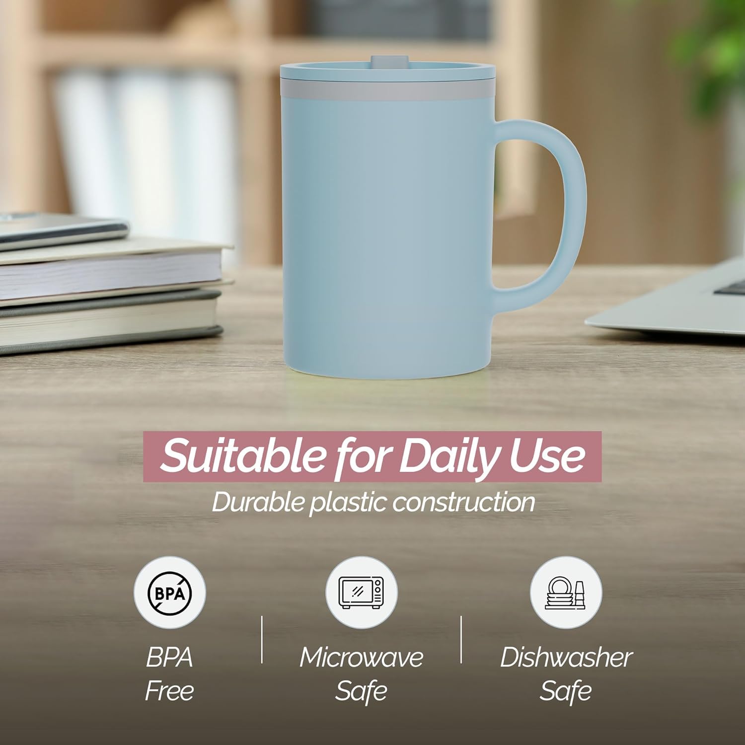 - Easy Cleaning: Made from BPA-free plastic, this desk mug ensures a safe and long-lasting drinking experience. Its durable build is perfect for daily use at the office. Microwave and dishwasher safe, this mug makes cleanup a breeze, ensuring convenience and longevity.