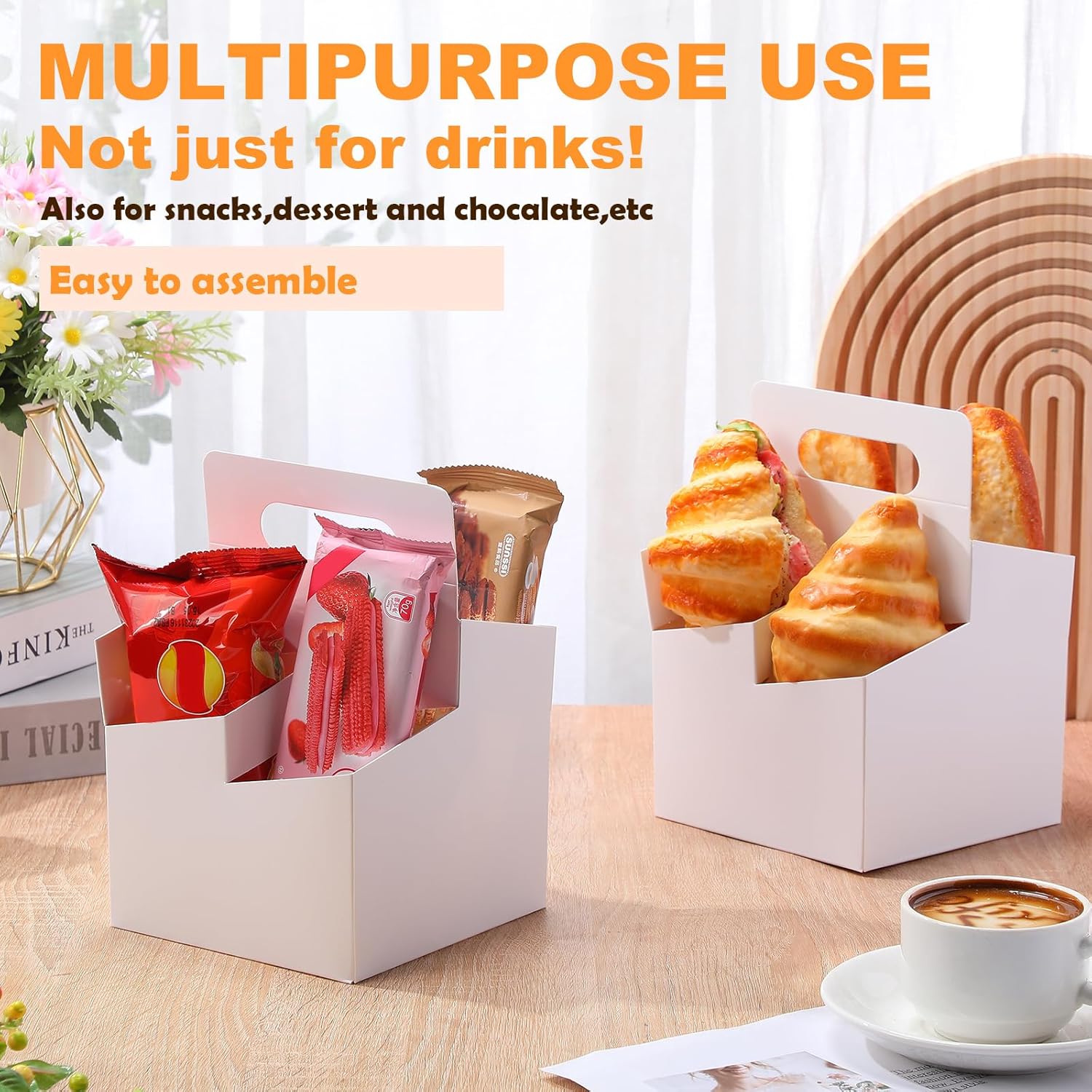 Jetec 4 Cup Drink Carrier with Handle, Kraft Paperboard Beer Carrier, Disposable Drink Holder for Hot or Cold Drinks, 12-16 oz Bottle Holder for Soda and Other Bottled Products(50 Pcs,White)