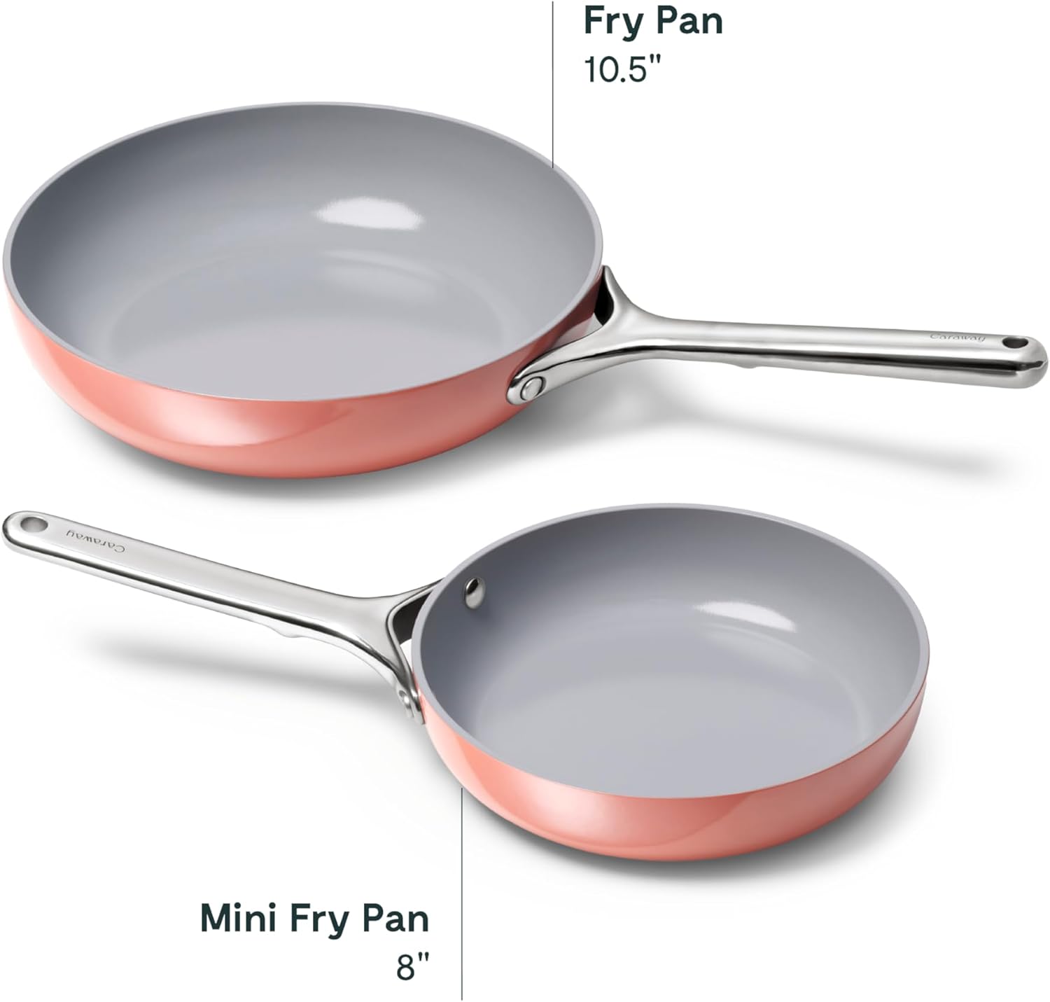 Caraway Fry Pan Duo - Nonstick Ceramic Frying Pan (8" & 10.5”) - Non Toxic, PTFE & PFOA Free - Oven Safe & Compatible with All Stovetops (Gas, Electric & Induction) - Perracotta