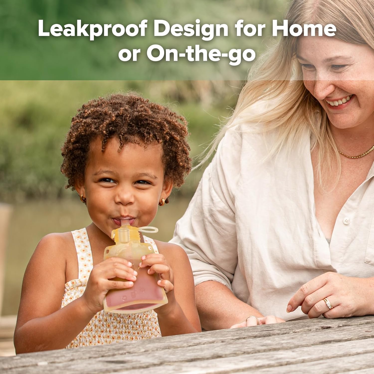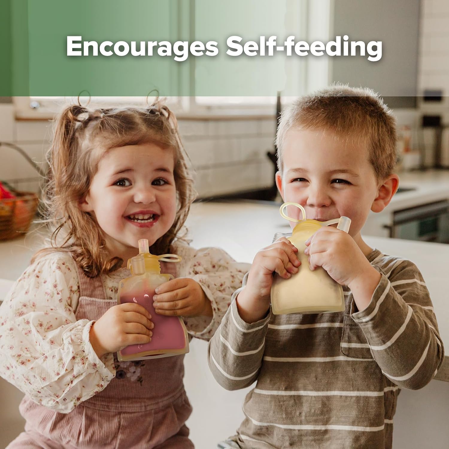 - ππππππππππ ππππ -π ππππππ:Each of these reusable pouches for toddlers and babies includes a variable flow opening for safe, self-paced feeding. Soft silicone spout is gentle on mouths, easing the transition to solids.