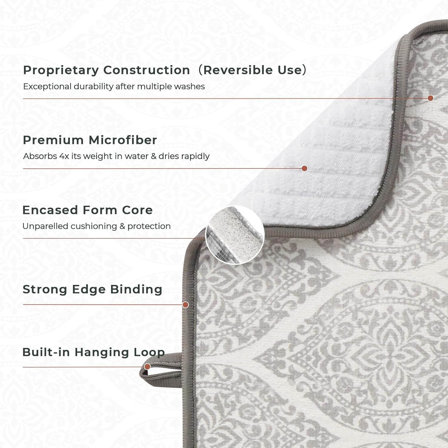 FRESHMINT Printed Dish Drying Mats for Kitchen Counter 2 Pack Absorbent Reversible Drying Mats Microfiber Kitchen Countertop Protector Dishes Drying Pad Extra Large 18"x24" Dish Mat