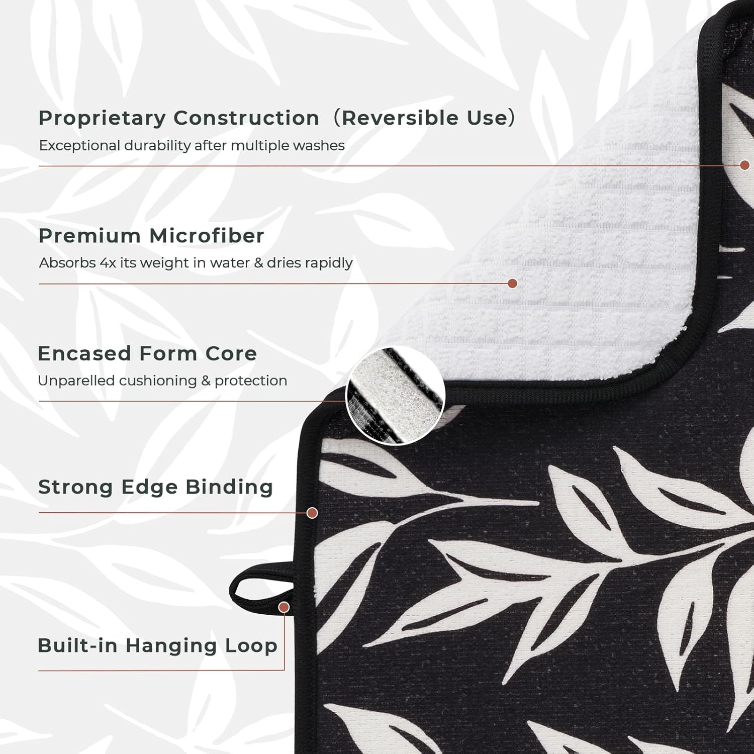 FRESHMINT Printed Dish Drying Mats for Kitchen Counter 2 Pack Absorbent Reversible Drying Mats Microfiber Kitchen Countertop Protector Dishes Drying Pad Extra Large 18"x24" Dish Mat
