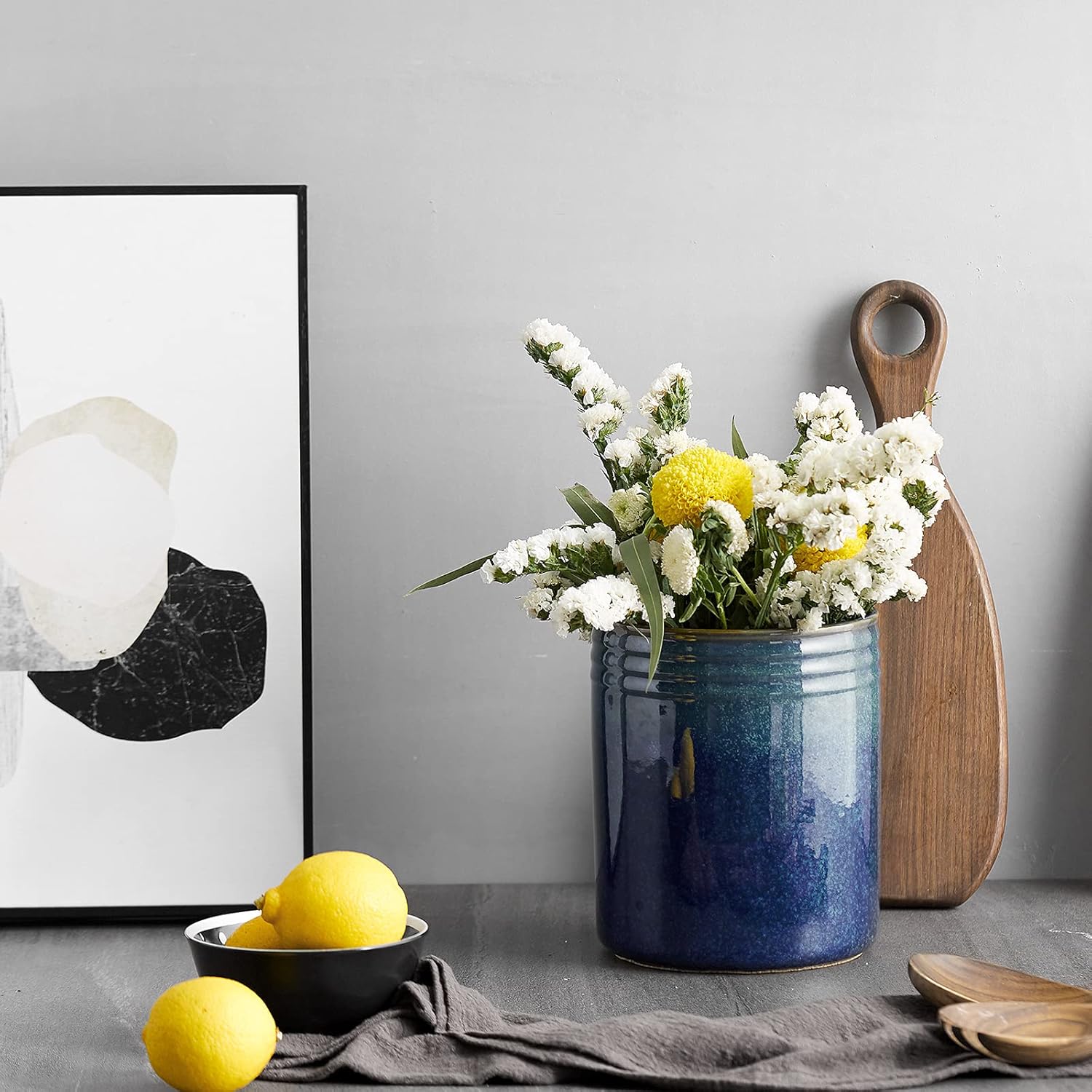 DOWAN 7.2" Kitchen Utensil Holder, Extra Large Farmhouse Utensil Holders for Countertop, Ceramic Utensil Crock, Anti Slip Cork Bottom (Multicolor, 7.2 Inch)