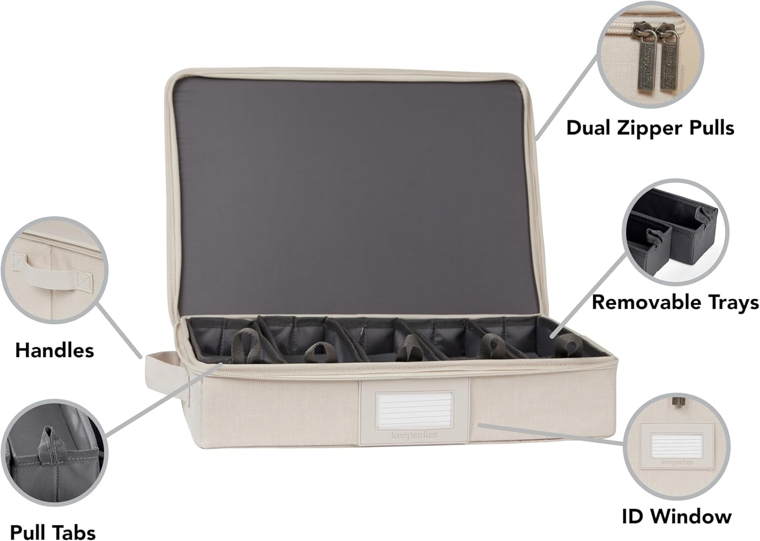 Covermates Keepsakes Flatware Storage Box - Stackable - Reinforced Handles - China Storage, Beige Heather