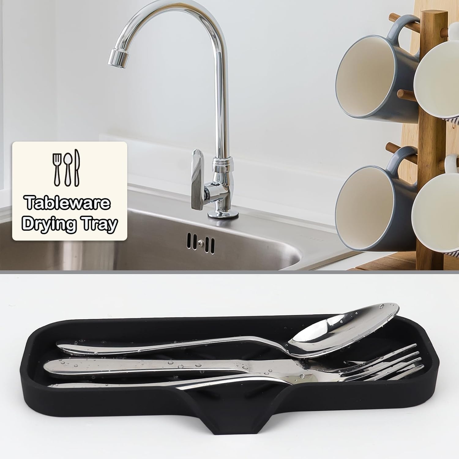 - ★Prevent Items From Sliding: The Silicone Sink Tray has a raised edge and an anti-skid base that prevent your items from sliding or falling off. You can keep your soap or sponge securely and firmly in place without worrying about them slipping into the sink or onto the floor.
