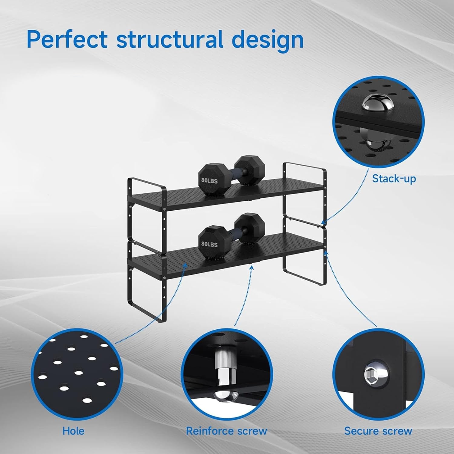 - Expandable &Stackable Cabinet Shelf Organizer: The width and height of the expandable kitchen cabinet shelves can be adjusted according to your needs, which is a very practical storage shelf. The dimensions before expansion are 16.5 "L x 8" W x 9.6 "H. Its length can be extended from 16.5" to 27". You can also stack the 2pack shelves together to form a two-layer storage space. Or it can be used as 2 single shelves separately