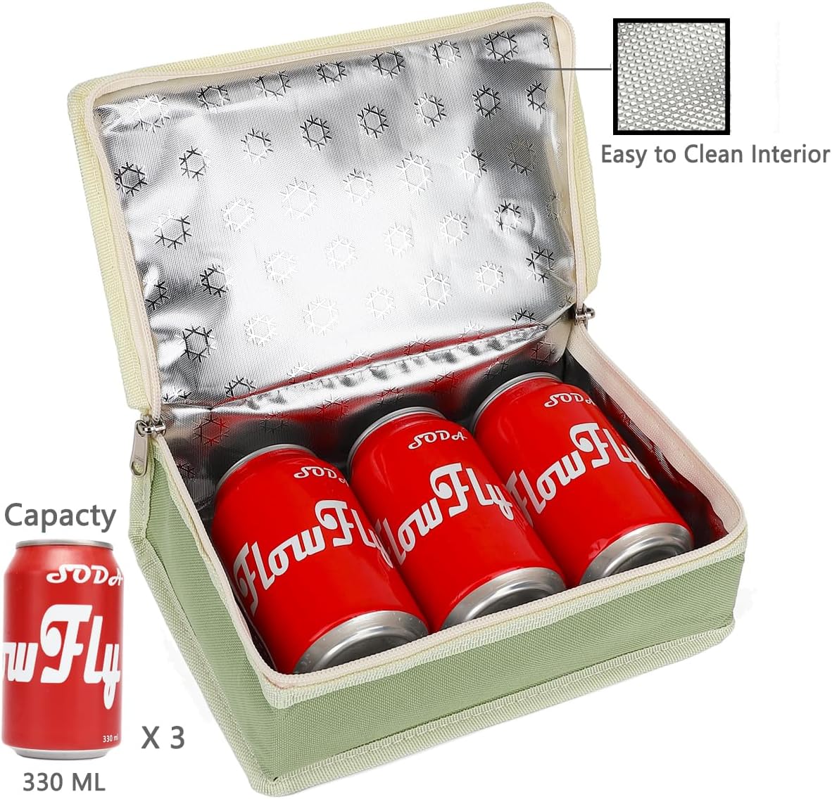 FlowFly Small Insulated Lunch box Portable Soft Bag Mini Cooler Thermal Meal Tote Kit with Handle for Work & School, Light Matcha