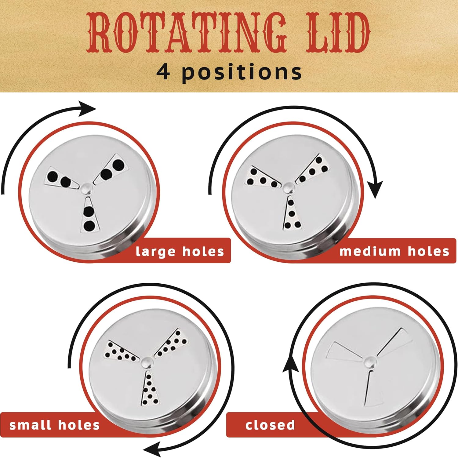 CUSINIUM [Pack of 4] 14 oz Seasonings Spice Shakers - BBQ Dry Rub Shakers - Cooking Dredge with Adjustable Fan-Style Lid and Handles