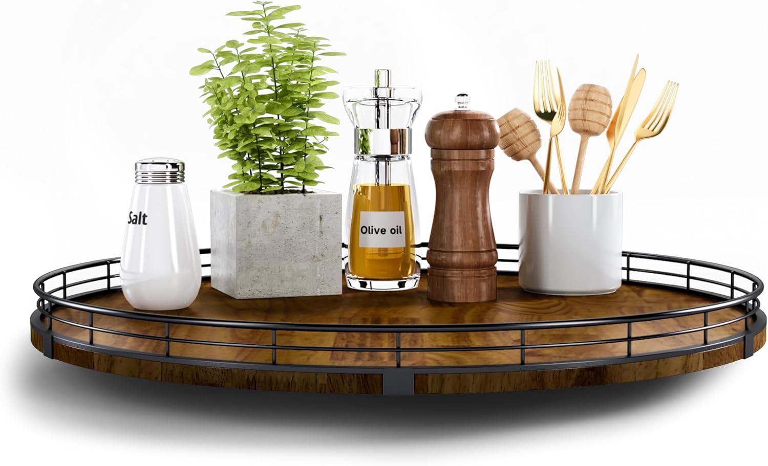 - ππππππ ππππππ:The base is large enough to hold a lot and heavy objects and successfully rotate. It is made of lovely oak wood that is strong with a sturdy metal rack to secure the items on the turntable. The turntable smoothly revolves all around making the items an easy reach. There is also included anti-slip pads on the bottom of the Lazy Susan, for extra surface protection.