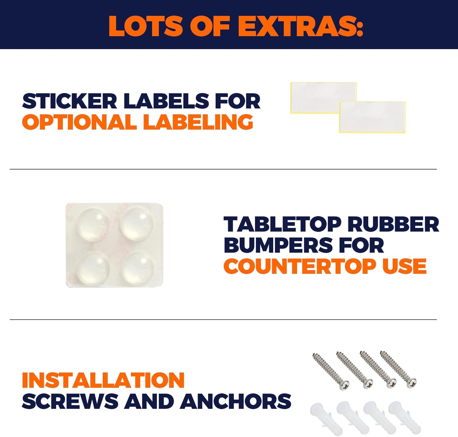 - Hassle-Free Installation - Setup is a breeze with our latex glove holder for wall! Our glove keeper comes with hanging hardware for easy installation & 4 bumpers if you choose to place on countertop. Also included are sticker labels.