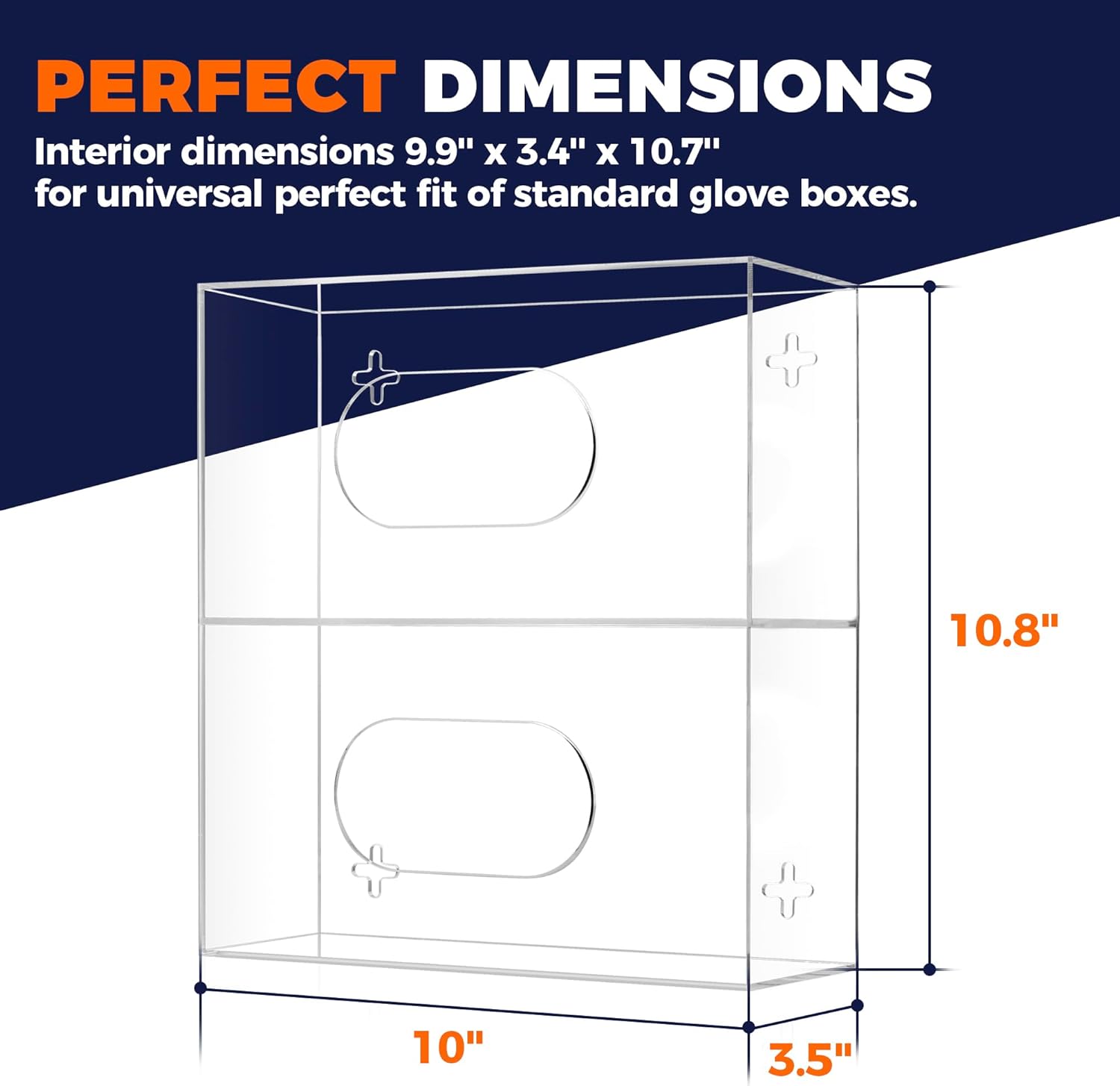 Double Glove Box Holder Wall Mount Glove Dispenser - Disposable Glove Holder Wall Mount Glove Station for Medical Gloves, Multipurpose Kitchen Gloves Holder - Includes Hanging Hardware