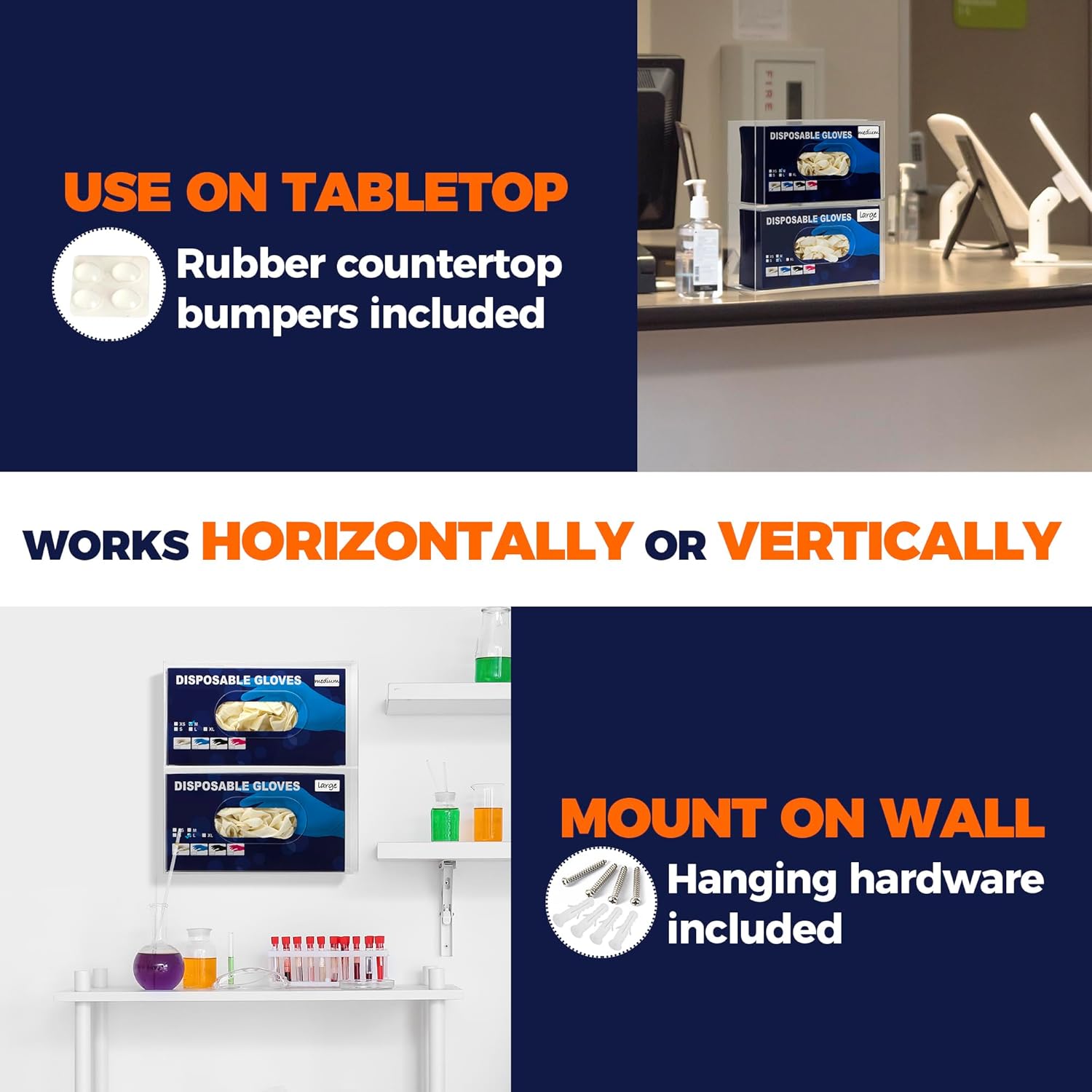- For Home or Commercial Use - Be it for a hospital, restaurant, shop or home, our glove wall mount glove rack will keep any space organized! Click 'Add to Cart' on our exam glove holder for wall or tabletop!
