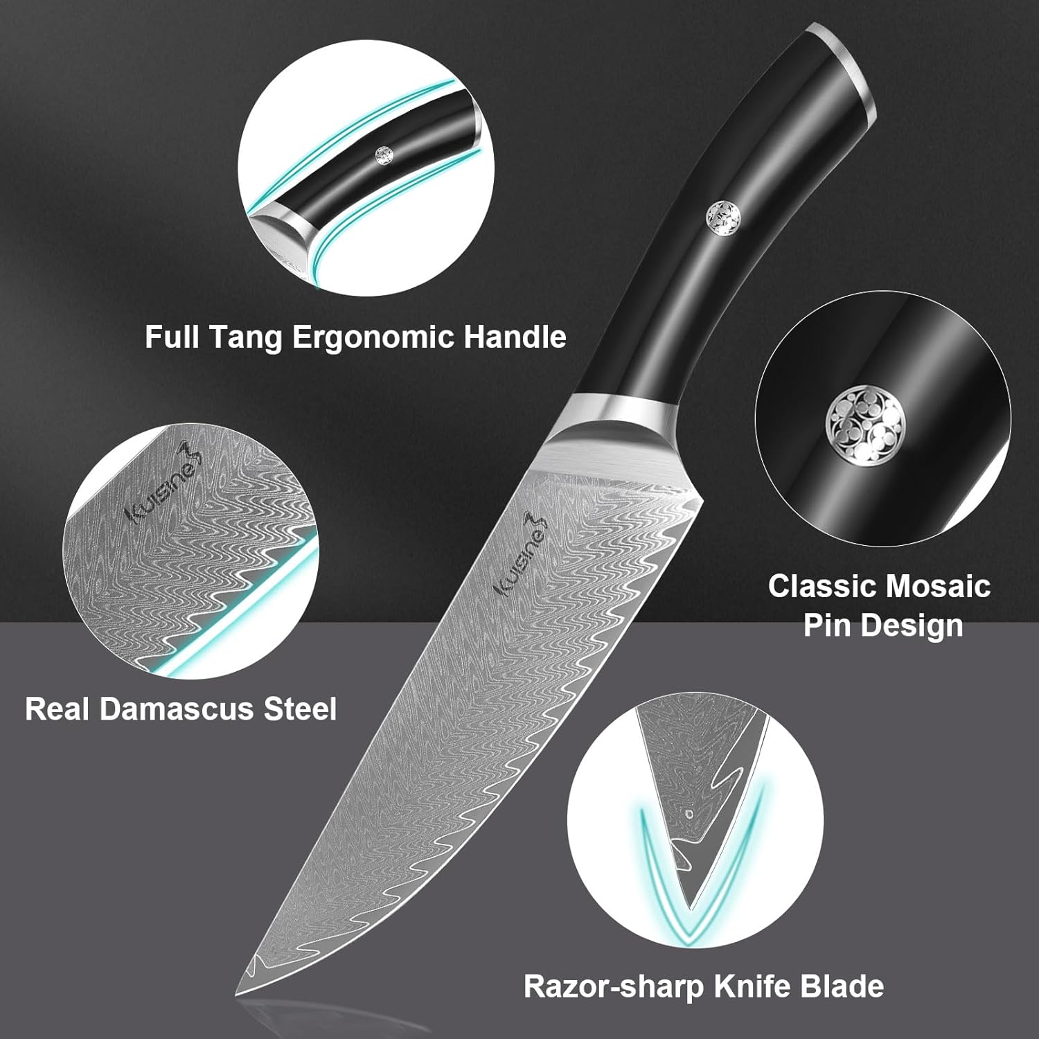- High Quality Raw Materials: The knife block set is made of premium damascus steel, which ensure the quality of knife better, its performance exceeds other brands' products and ISO standard.