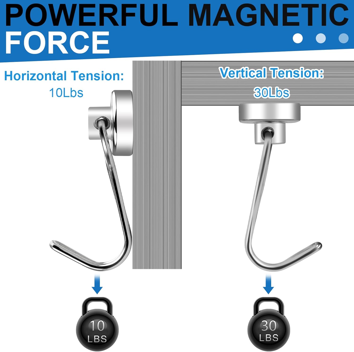 - 【Attention Please】If you want to use heavy duty magnetic hooks on stainless steel refrigerators, it may cause scratches due to strong magnetism. You can avoid problems like this by putting a tissue or something else between the magnet and the surface.