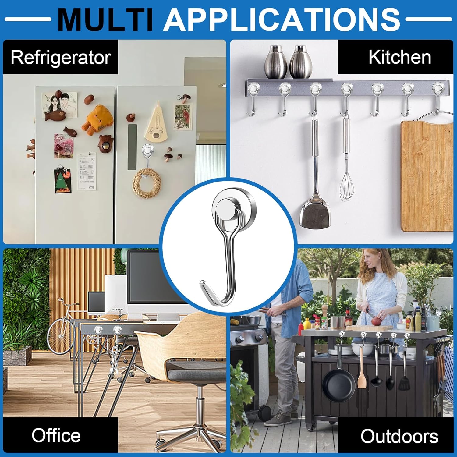 - 【Wide Application】High grade neodymium magnetic hooks for organization, mounting, decorating and storage. Our Powerful magnetic hooks are perfect for home , kitchen , office, garage,cabinets, grill, refrigerator,Cruise and more!