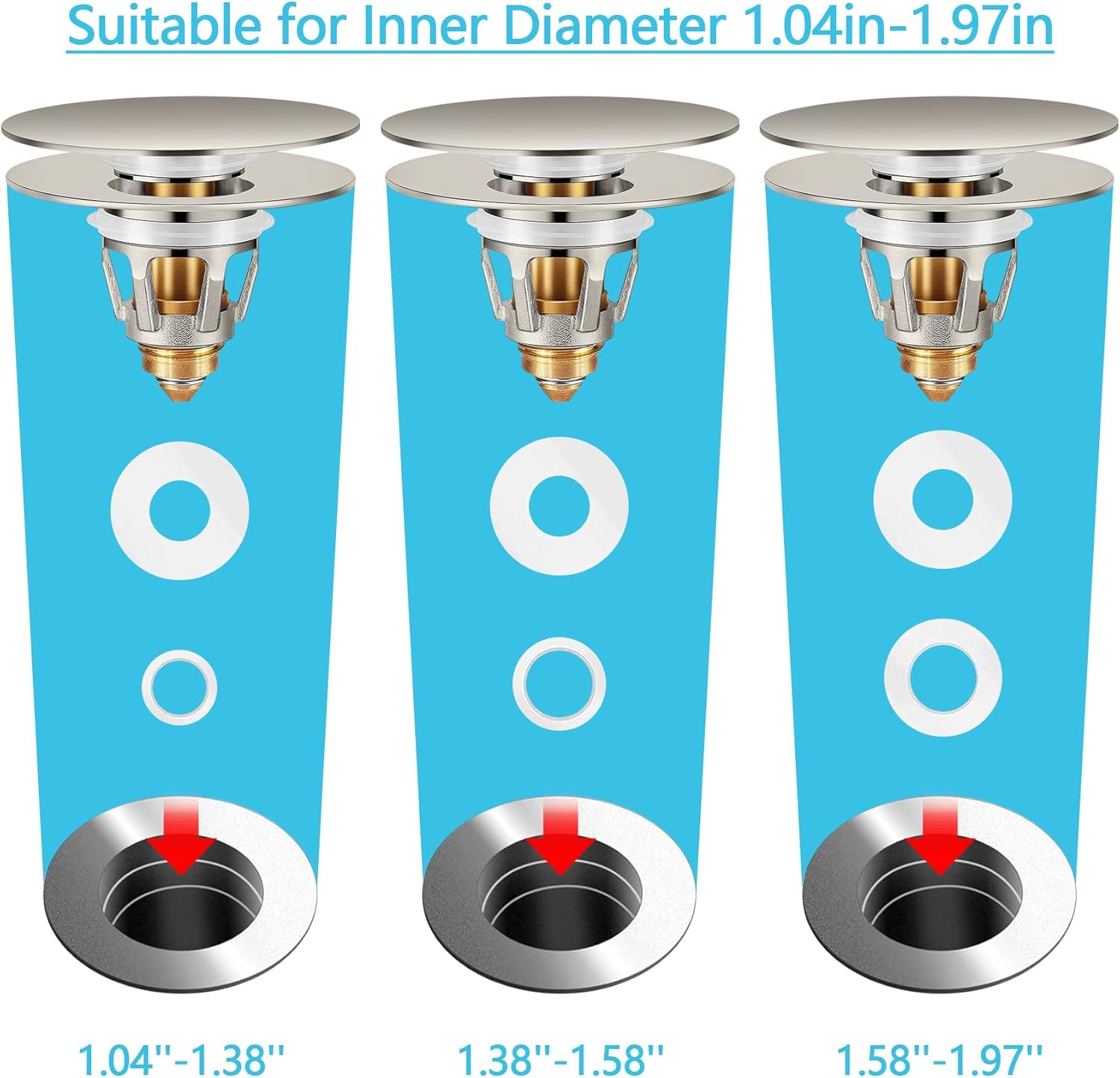- [ Easy to Install ] No tools are needed, it can be installed easily with bare hands. You just take out the old bounce core and install a new bounce core. Anyone can install the pop-up drain because of its simple structure. If you want to use it for a larger sink hole diameter, you can use the rubber ring we included to increase the inner diameter of the sink plug.