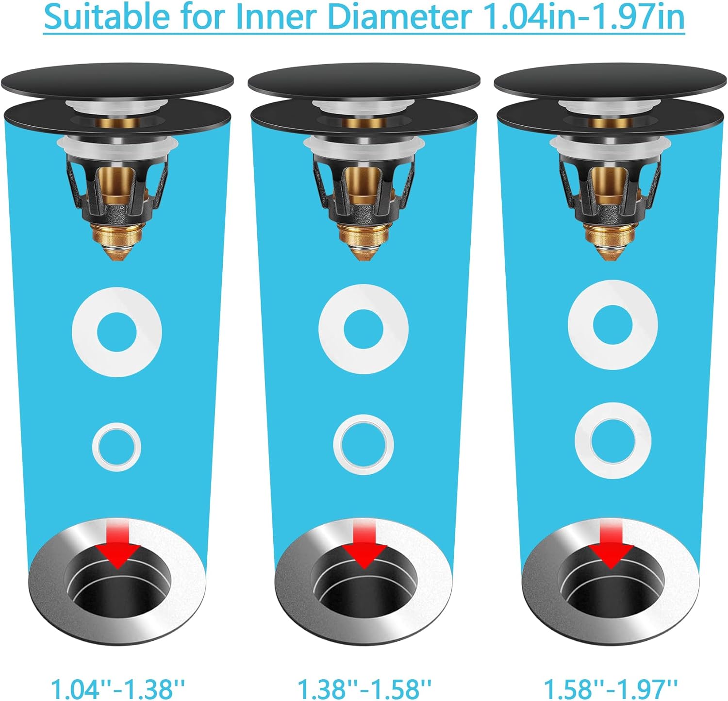 - [ Easy to Install ] No tools are needed, it can be installed easily with bare hands. You just take out the old bounce core and install a new bounce core. Anyone can install the pop-up drain because of its simple structure. If you want to use it for a larger sink hole diameter, you can use the rubber ring we included to increase the inner diameter of the sink plug.