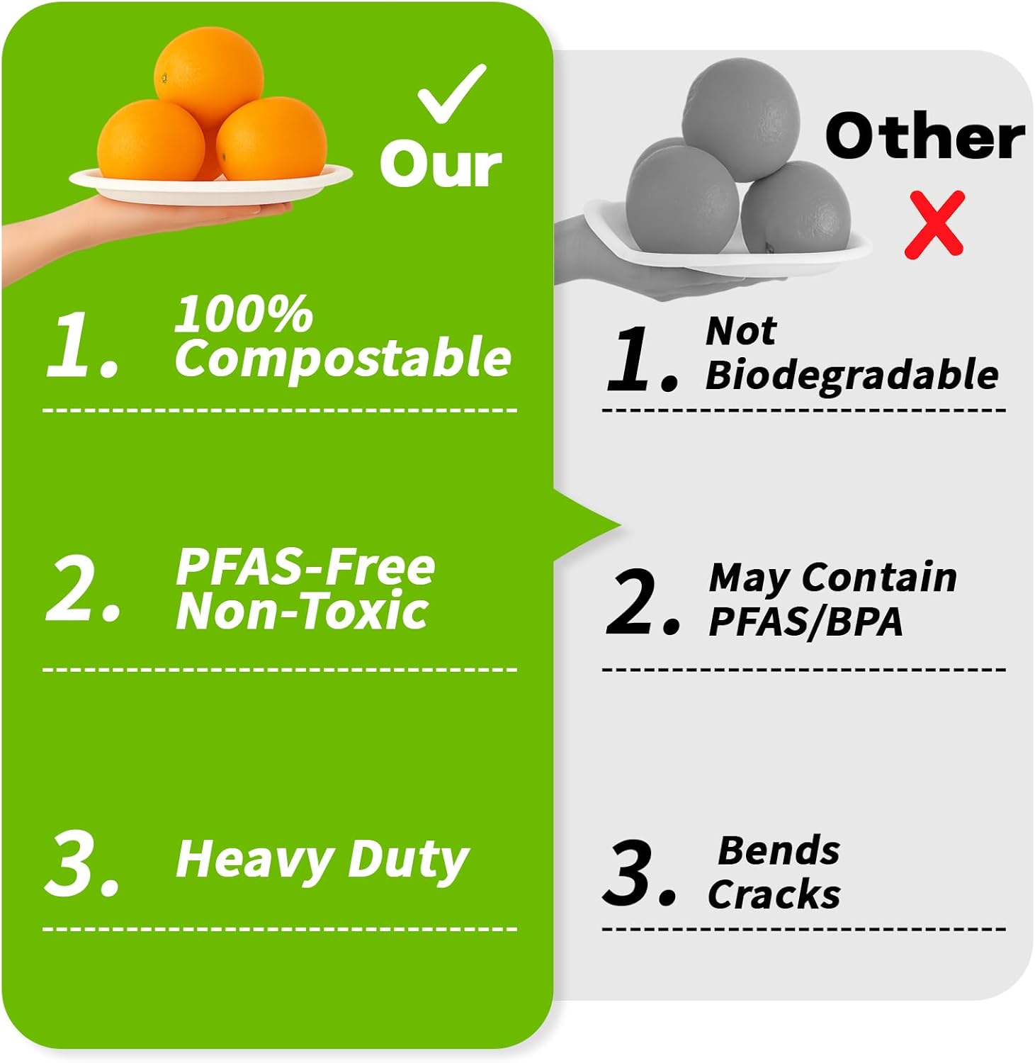 - 2️⃣✅ 100% Compostable & Eco-Friendly Made from 100% sugarcane bagasse, these large compostable paper plates are fully biodegradable – an eco-friendly alternative to plastic or foam dinnerware.