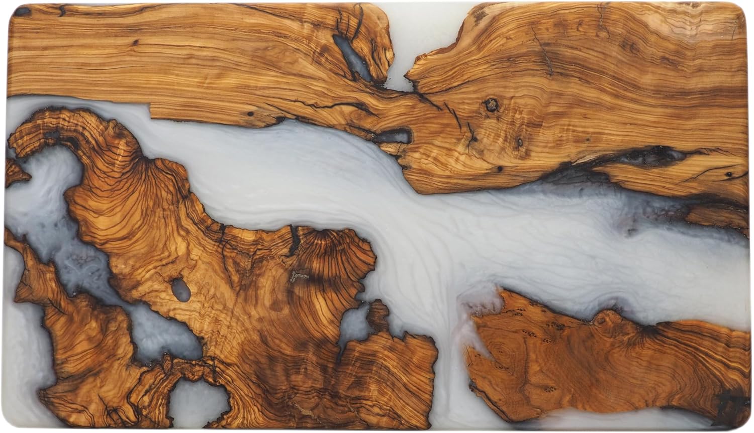 Handmade Charcuterie & Cutting Board - Decorative, Olive Wood Boards for Serving Cheese, Fruit, Meat - Ideal Kitchen, Unique Housewarming Gift - White Resin