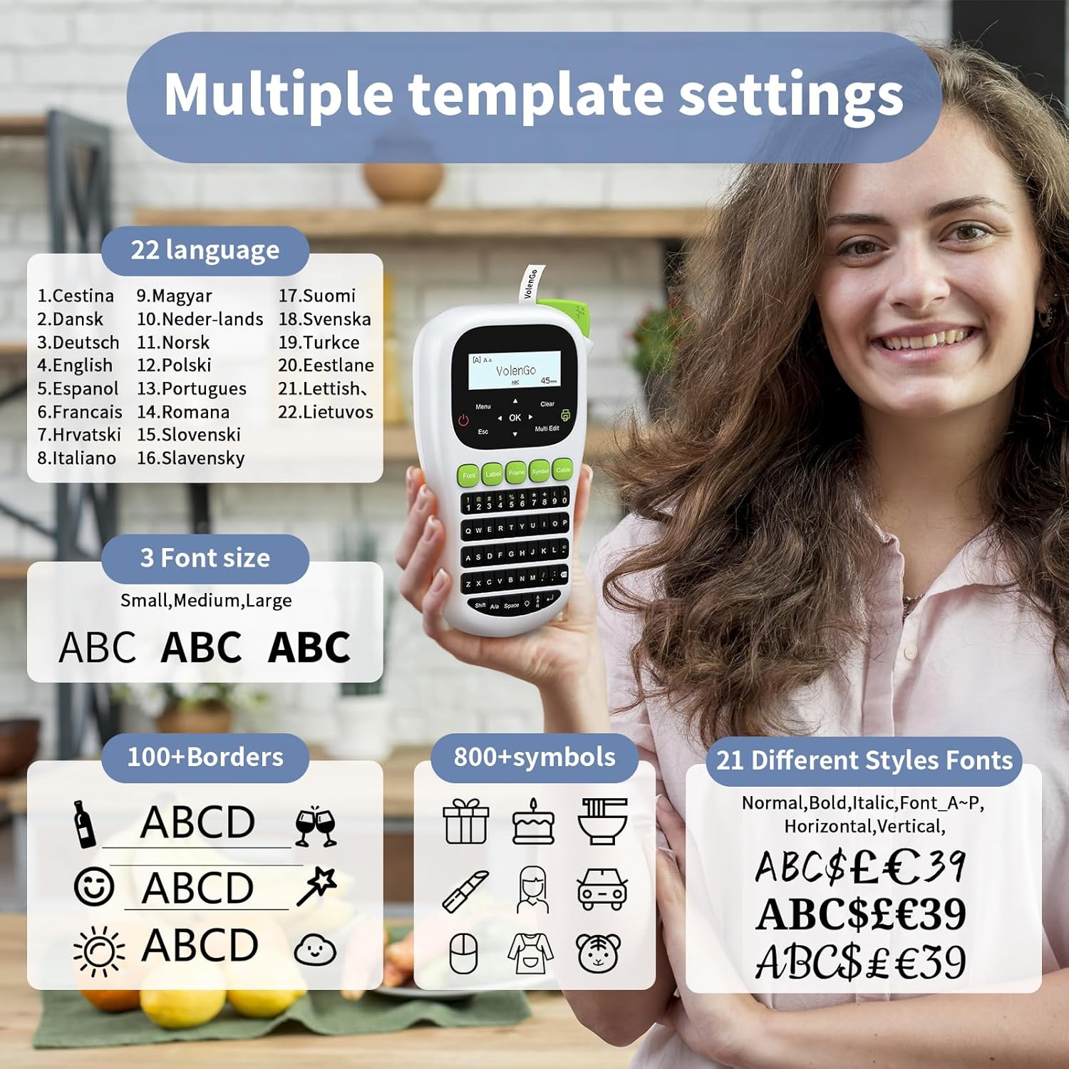 - ๐๐ฎ๐๐-๐๐ผ-๐จ๐๐ฒ: VolenGo H1100 label maker machine features easy setup, user-friendly menus, and intuitive settings; H1100 handheld label maker has a lightweight design and a user-friendly interface