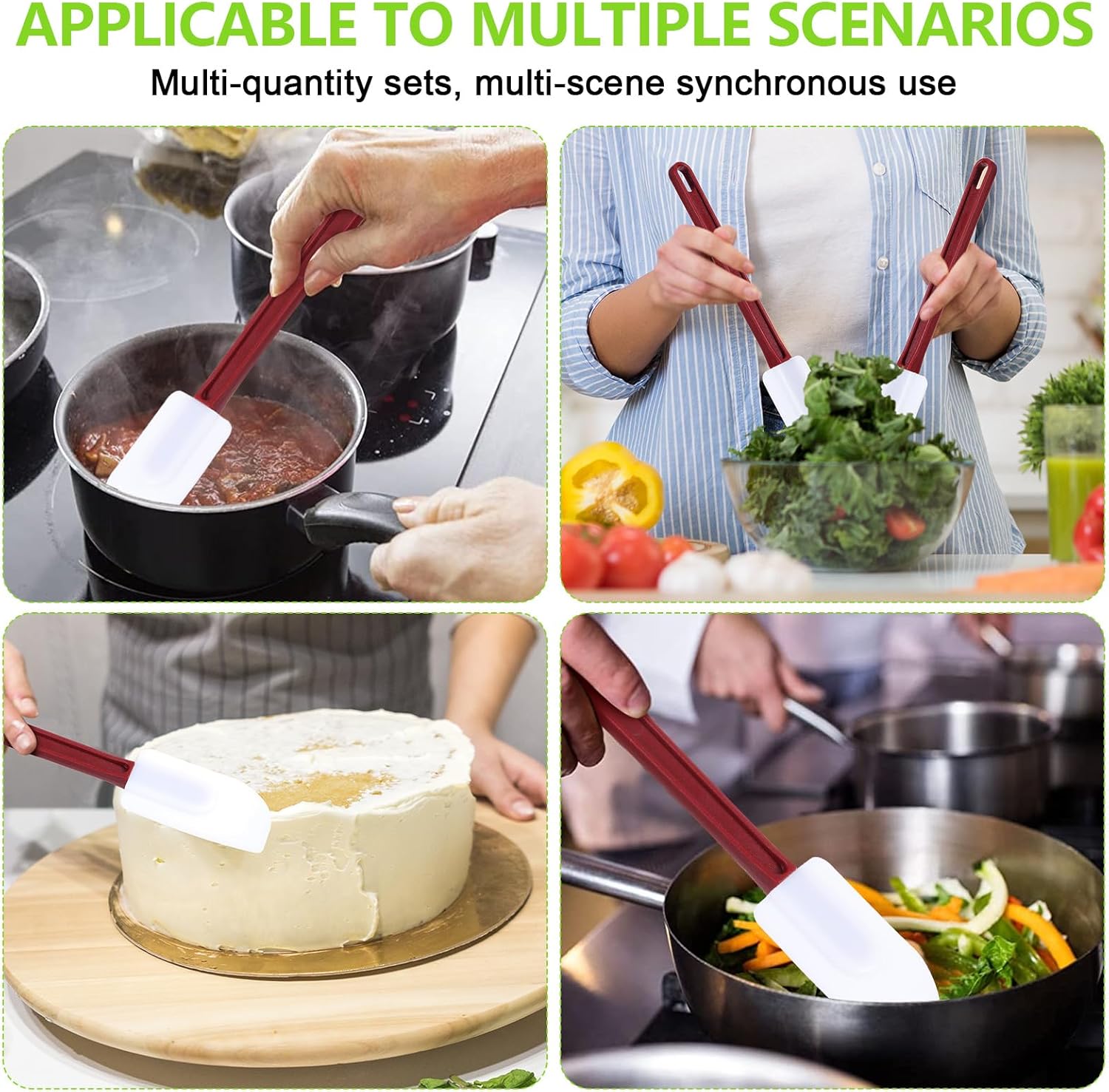 - Safe Material: our spatulas are made of food grade silicone (the head part) and nylon (handle), you will feel safe when using them, meanwhile the rubber spatulas are durable and resistant to 500 degrees Fahrenheit, so they will not melt or emit odor during use and not easy broken