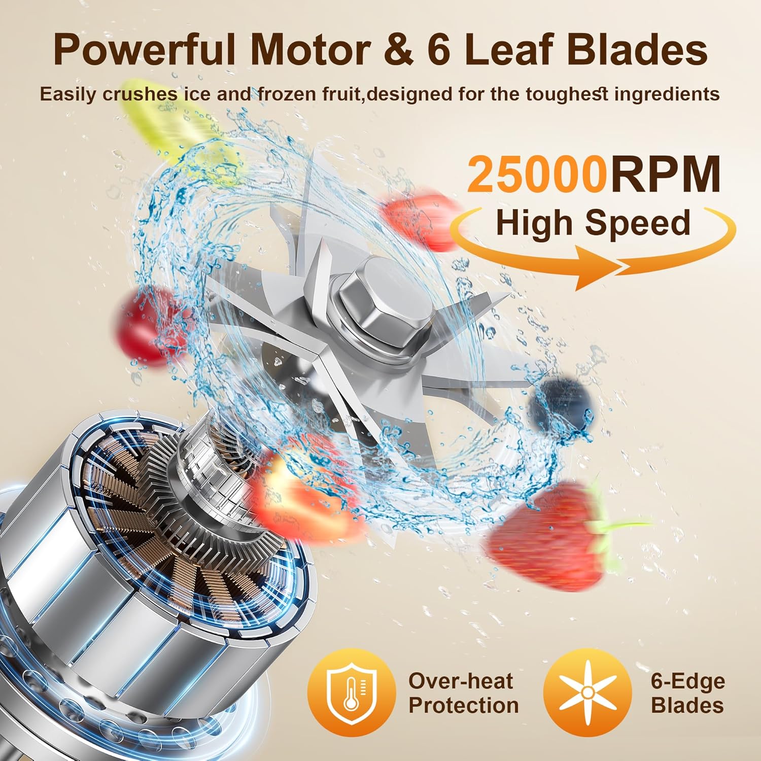 - [Powerful Blenders for Kitchen]: PRASKY blender for smoothies with powerful 3.0-hp motor which reaches speeds of up to 25000 RPM/min, faster and stronger, Blenders feature an enhanced 6-leaf sharp blade which can easily crush ice cubes, vegetables and fruits.Powerful blender for smoothies and shakes are effortlessly available with just a twist.