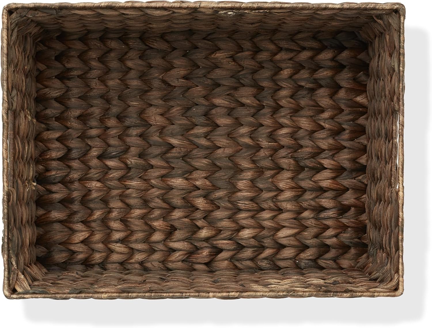 Casafield Set of 2 Water Hyacinth Pantry Baskets, 12-1/2" x 17" x 8", with Chalkboard Labels and Chalk Marker - Espresso, Woven Storage Bin Organizers for Kitchen Shelves