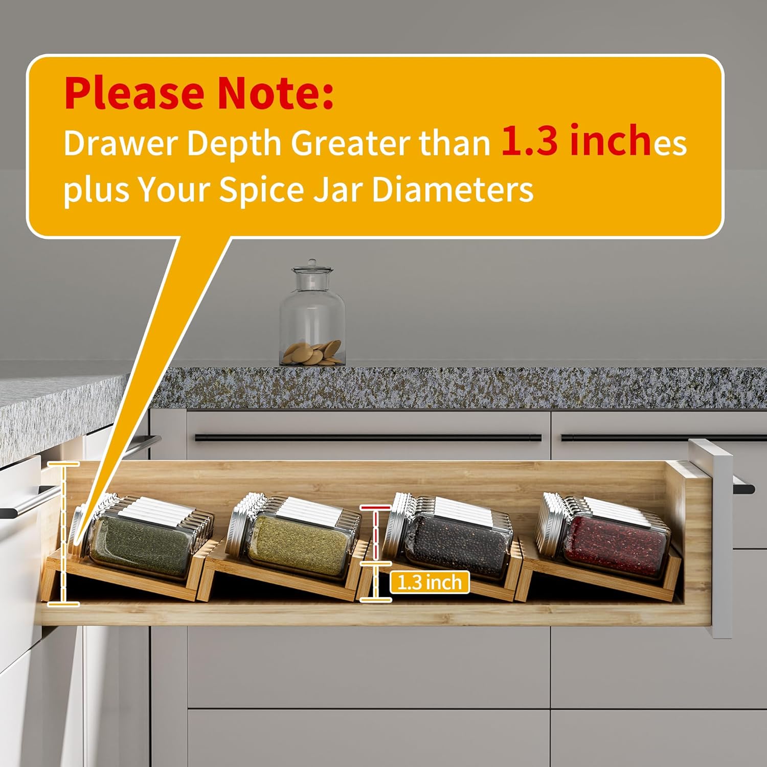 - Durable Bamboo Spice Drawer Organizer - Crafted from sturdy bamboo material, this spice rack tray offers durability and elegance. Unlike acrylic or plastic organizers, bamboo ensures long-lasting use without warping or yellowing, adding a touch of natural beauty to your kitchen
