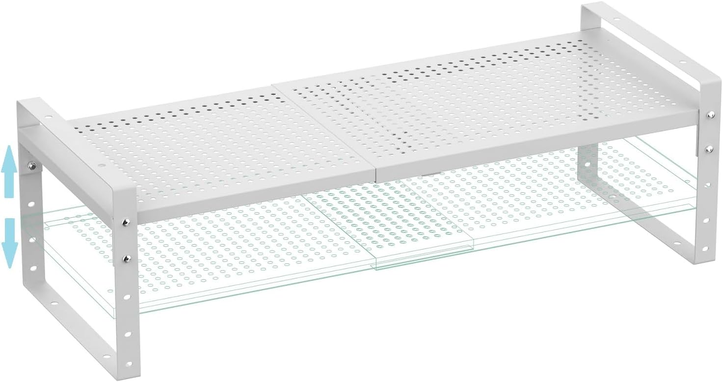 Expandable Shoe Rack Stackable Metal Pantry Storage Shelves Stand Adjustable Height Cabinet Shelf Organizer Racks Spice Shelving(1PACK/WHITE,MEDIUM)