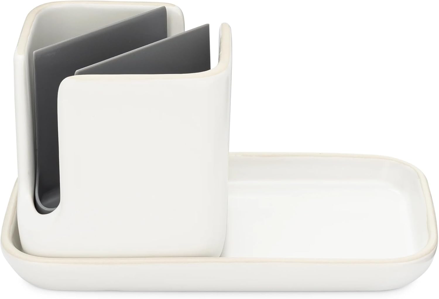 Full Circle Stash, Ceramic Kitchen Sink Caddy, Stylish Modular Sponge Holder & Dish Brush Organizer, White/Gray, 11"